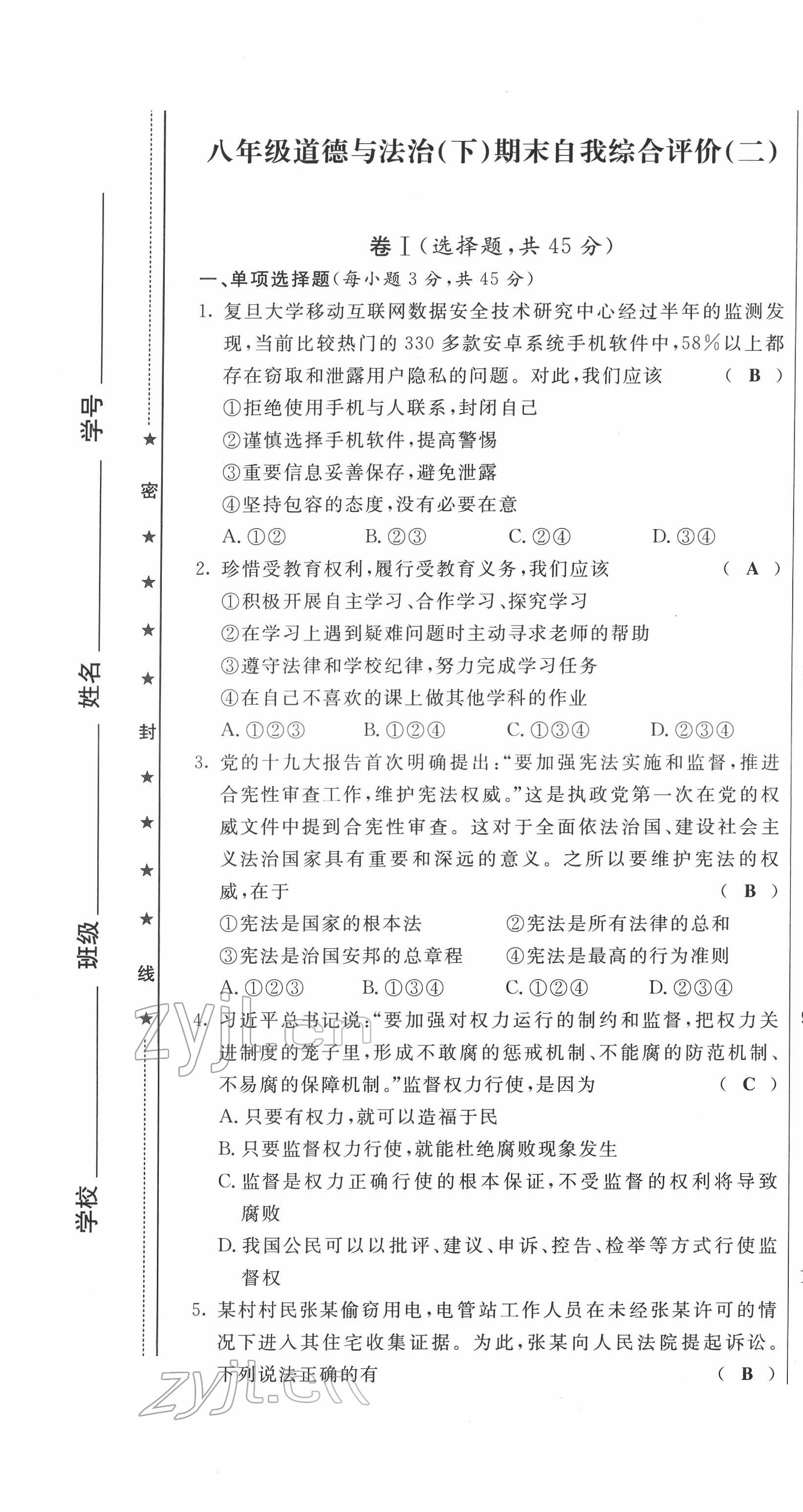 2022年绩优课堂高效提升满分备考八年级道德与法治下册人教版