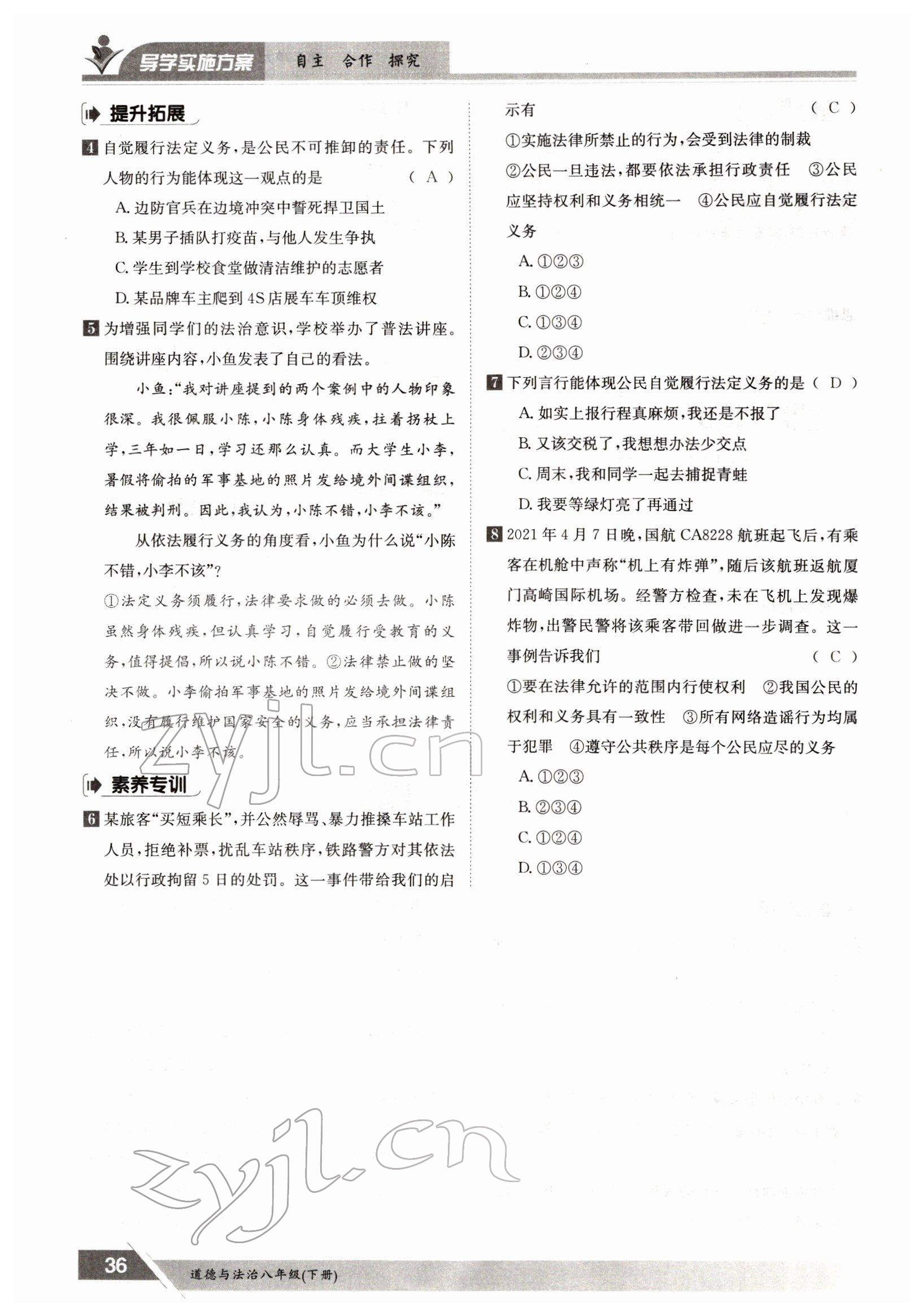 注:目前有些书本章节名称可能整理的还不是很完善,但都是按照顺序排列的,请同学们按照顺序仔细查找。练习册 2022年三段六步导学案八年级下册道德与法治人教版 答案主要是用来给同学们做完题方便对答案用的,请勿直接抄袭。