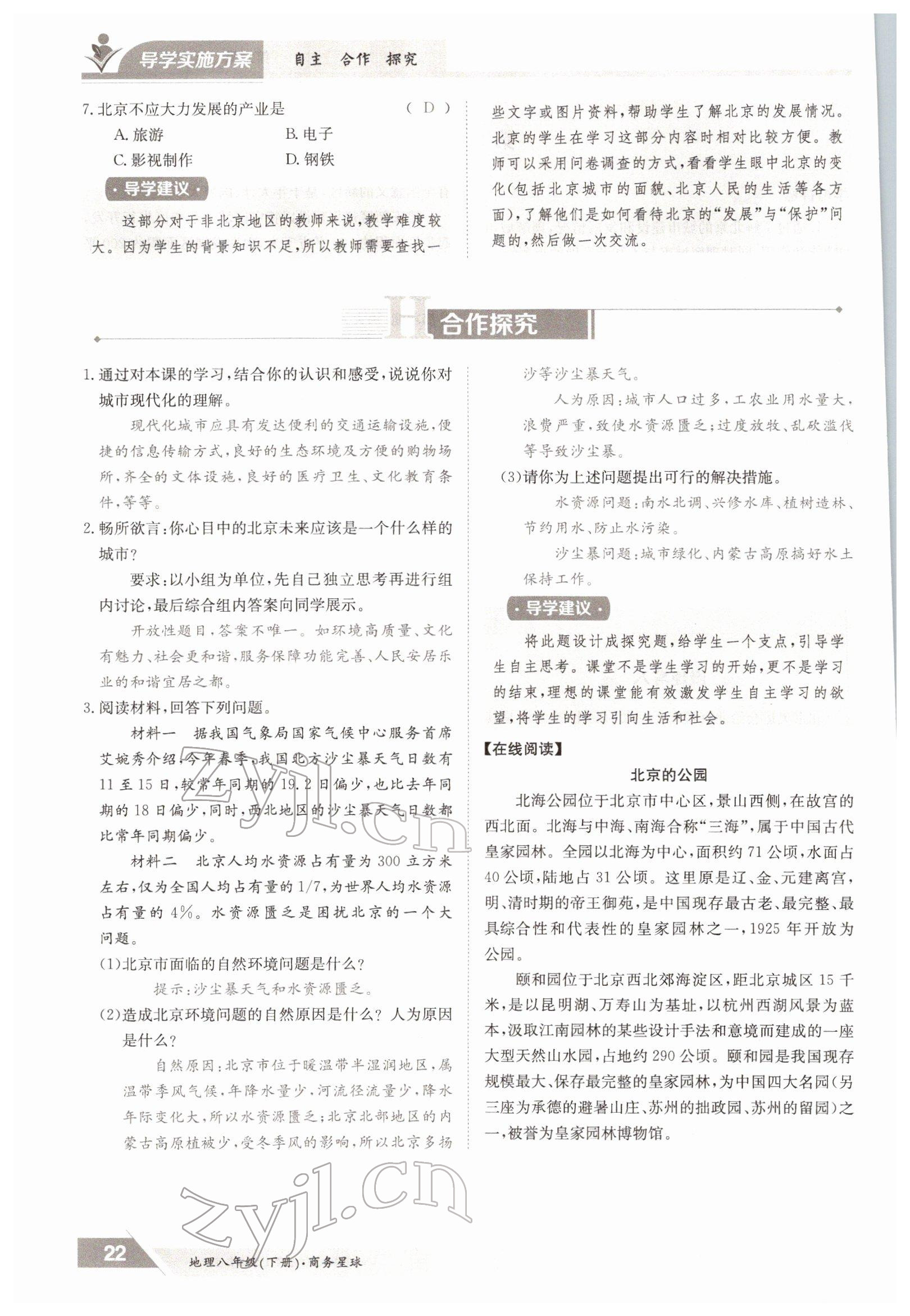 2022年金太阳导学测评八年级下册地理商务星球版