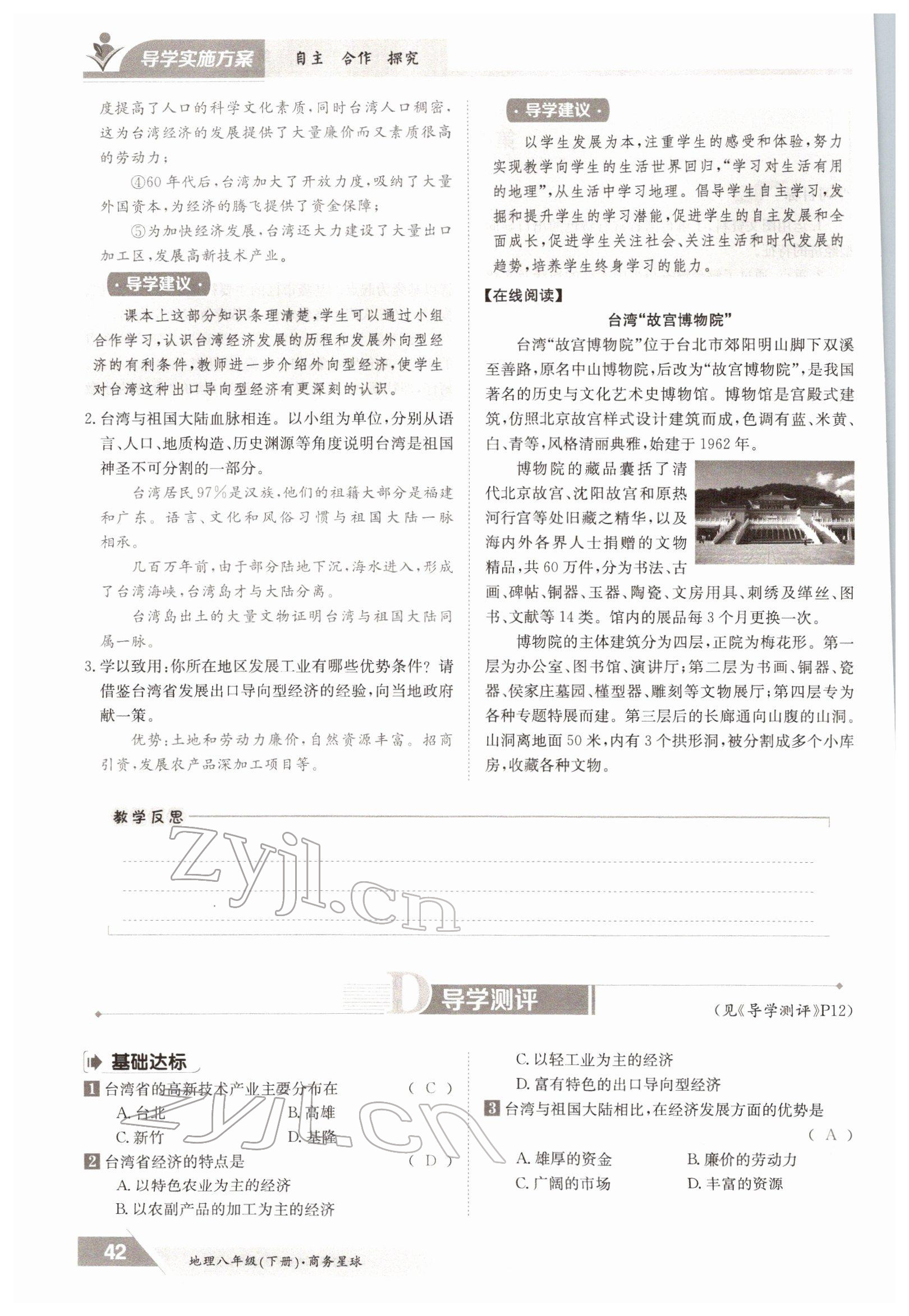 2022年金太阳导学测评八年级下册地理商务星球版