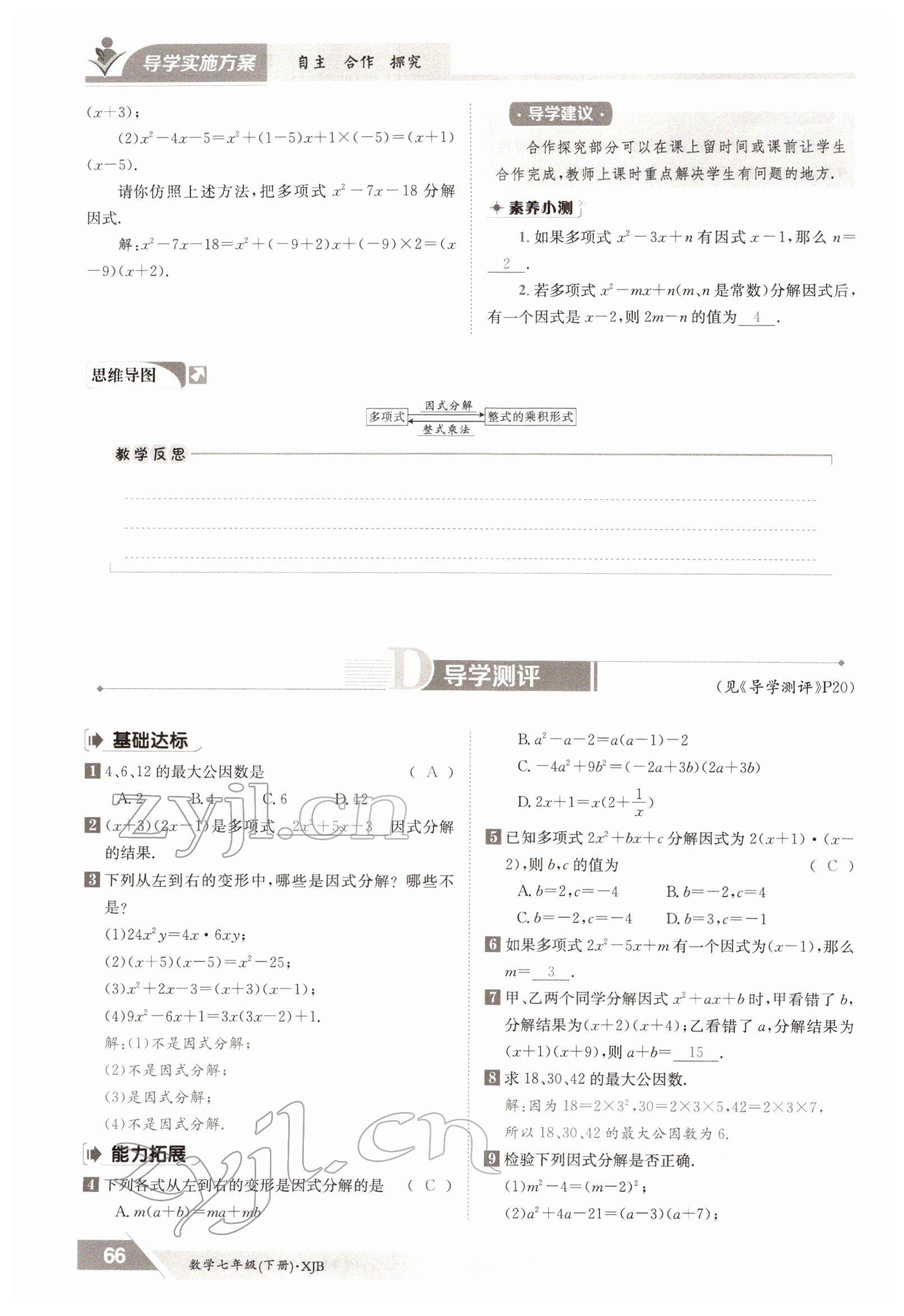 2022年三段六步导学测评七年级数学下册湘教版
