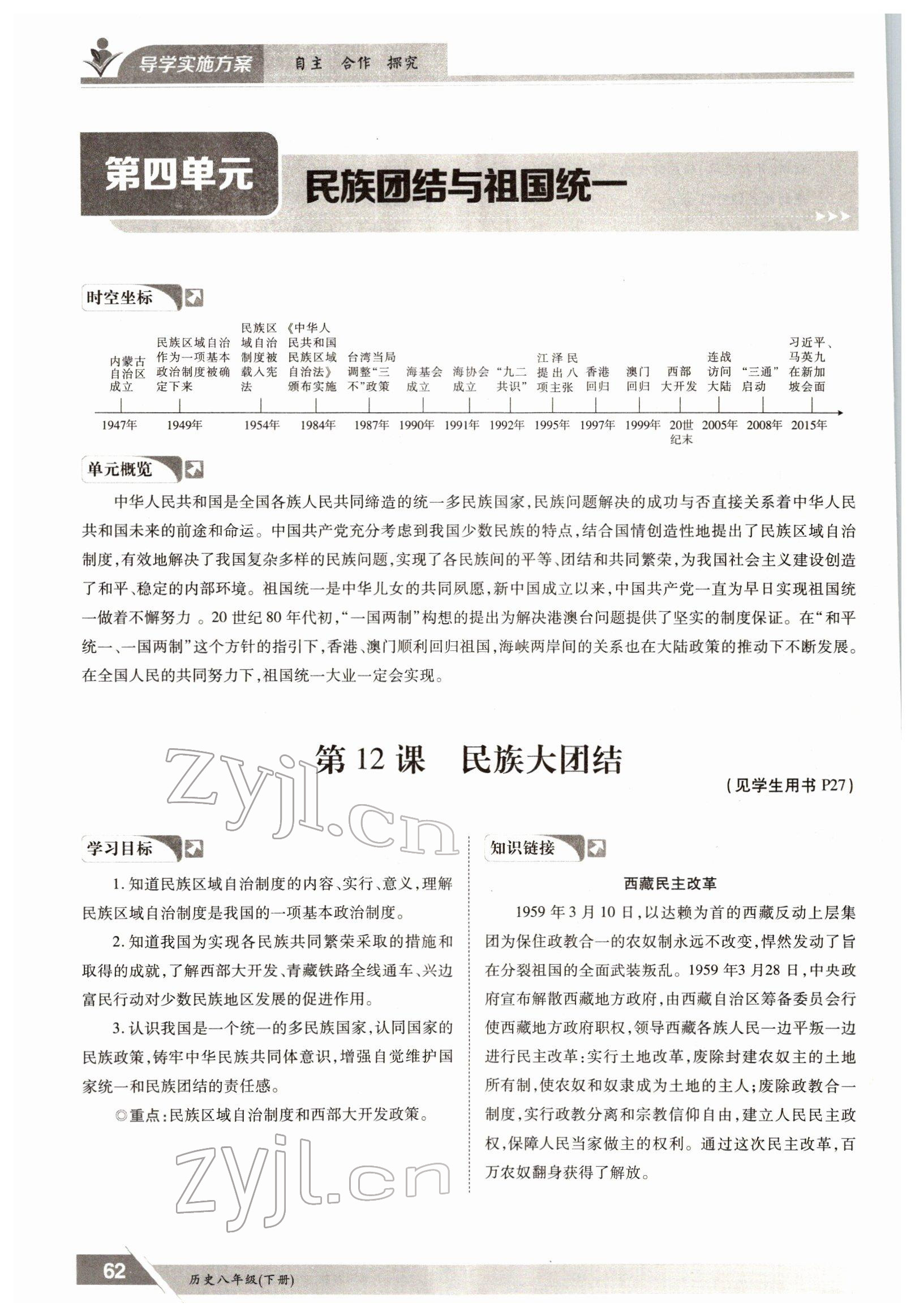 2022年金太阳导学测评八年级下册历史人教版