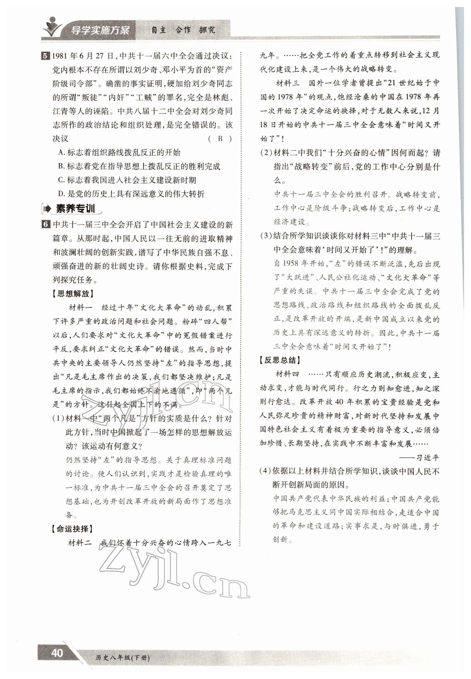 注:目前有些书本章节名称可能整理的还不是很完善,但都是按照顺序排列的,请同学们按照顺序仔细查找。练习册 2022年三段六步导学测评八年级下册历史人教版 答案主要是用来给同学们做完题方便对答案用的,请勿直接抄袭。