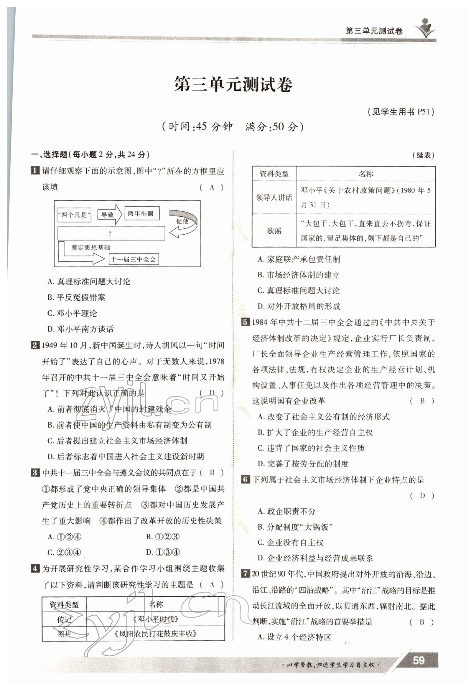 注:目前有些书本章节名称可能整理的还不是很完善,但都是按照顺序排列的,请同学们按照顺序仔细查找。练习册 2022年三段六步导学测评八年级下册历史人教版 答案主要是用来给同学们做完题方便对答案用的,请勿直接抄袭。