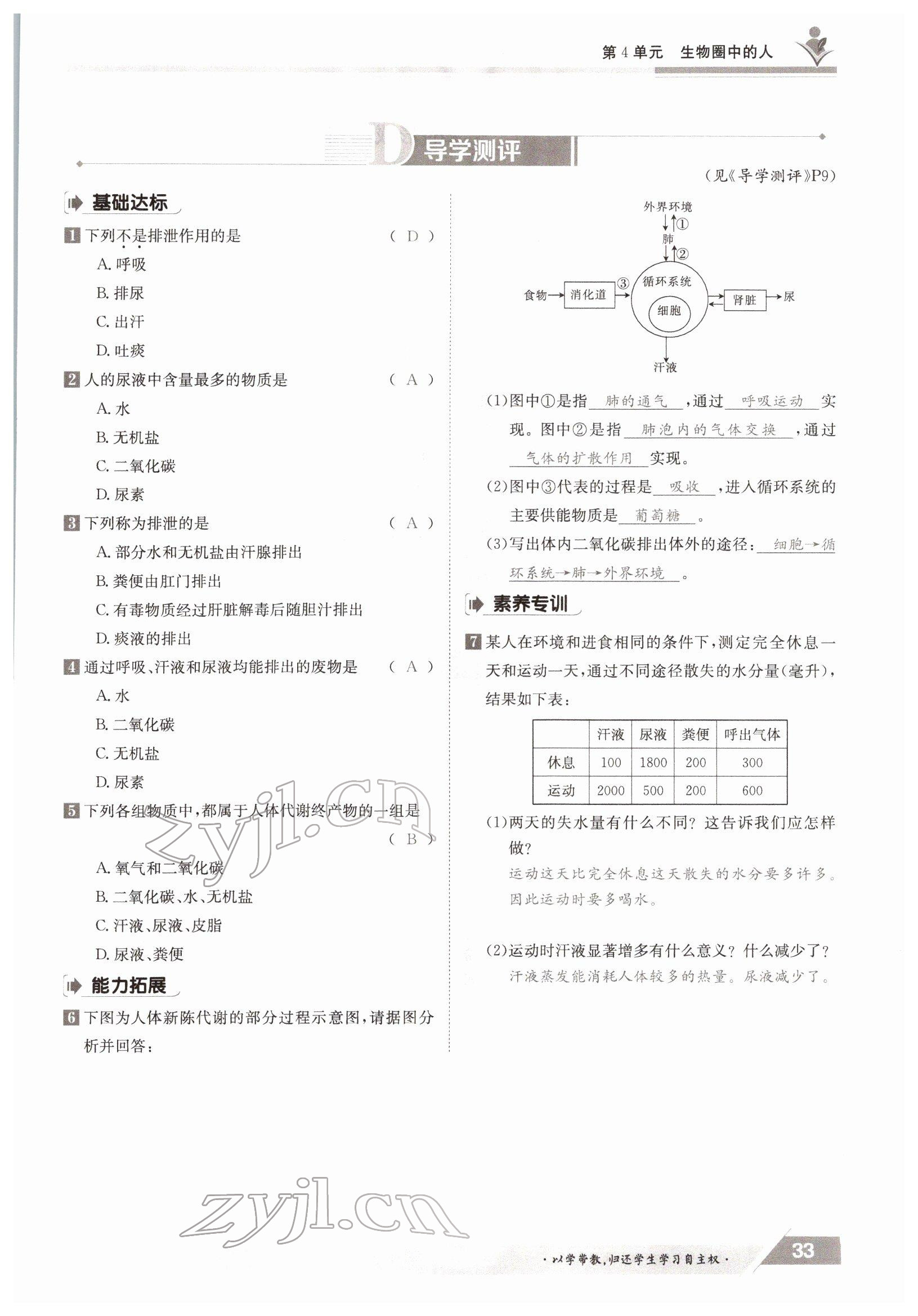 注:目前有些书本章节名称可能整理的还不是很完善,但都是按照顺序排列的,请同学们按照顺序仔细查找。练习册 2022年金太阳导学测评七年级生物下册北师大版 答案主要是用来给同学们做完题方便对答案用的,请勿直接抄袭。