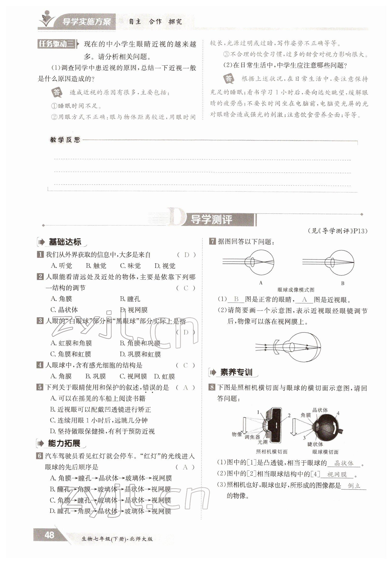注:目前有些书本章节名称可能整理的还不是很完善,但都是按照顺序排列的,请同学们按照顺序仔细查找。练习册 2022年金太阳导学测评七年级生物下册北师大版 答案主要是用来给同学们做完题方便对答案用的,请勿直接抄袭。
