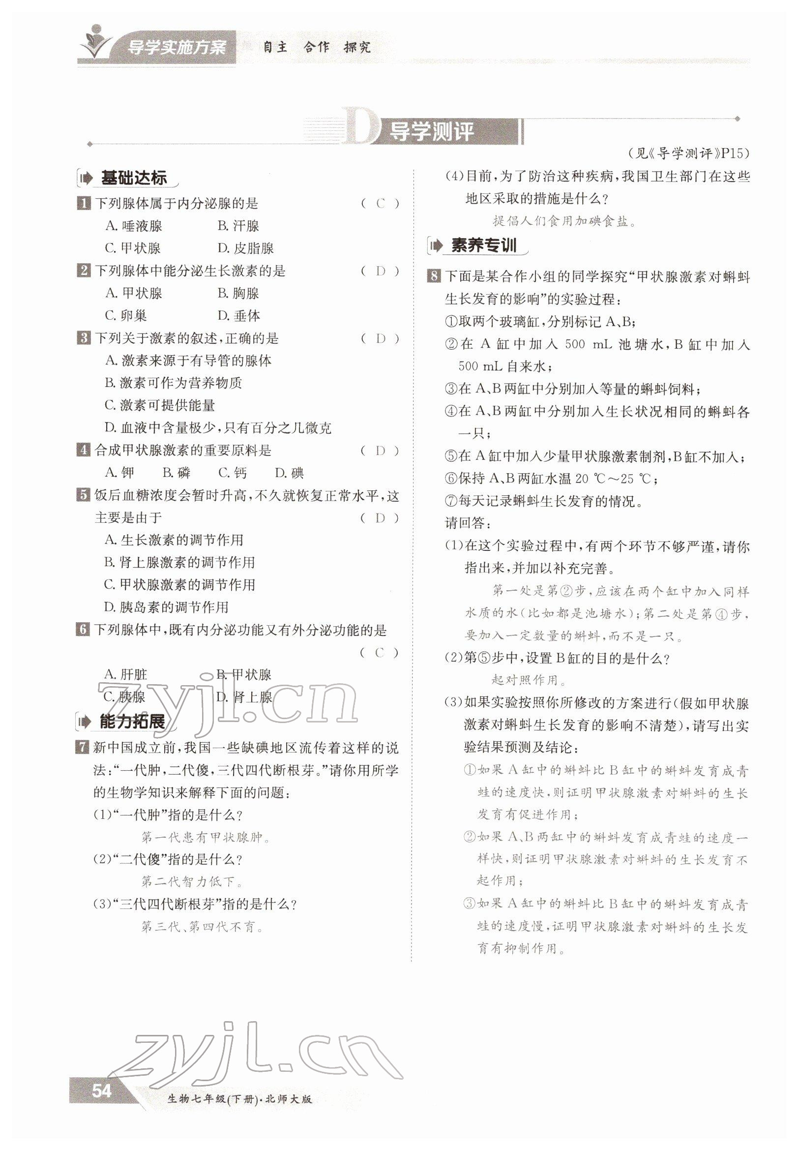 注:目前有些书本章节名称可能整理的还不是很完善,但都是按照顺序排列的,请同学们按照顺序仔细查找。练习册 2022年金太阳导学测评七年级生物下册北师大版 答案主要是用来给同学们做完题方便对答案用的,请勿直接抄袭。