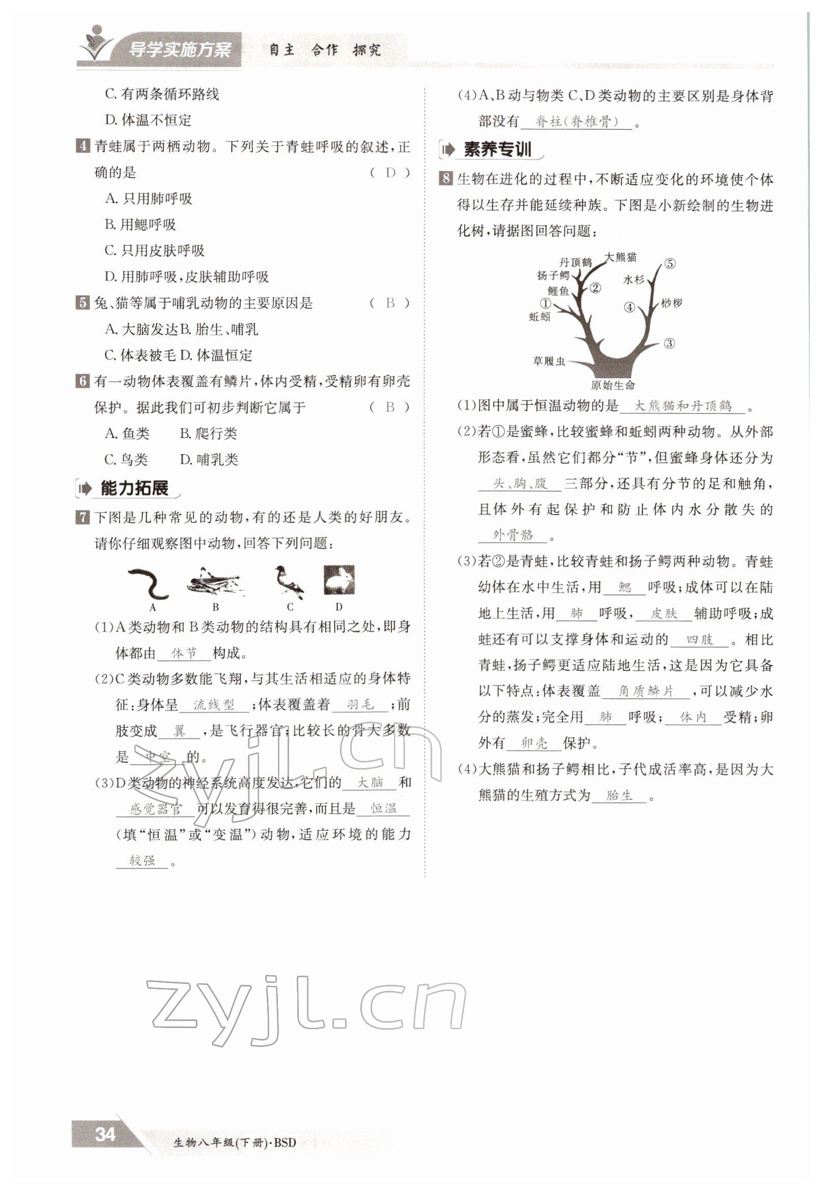 注:目前有些书本章节名称可能整理的还不是很完善,但都是按照顺序排列的,请同学们按照顺序仔细查找。练习册 2022年金太阳导学测评八年级生物下册北师大版 答案主要是用来给同学们做完题方便对答案用的,请勿直接抄袭。