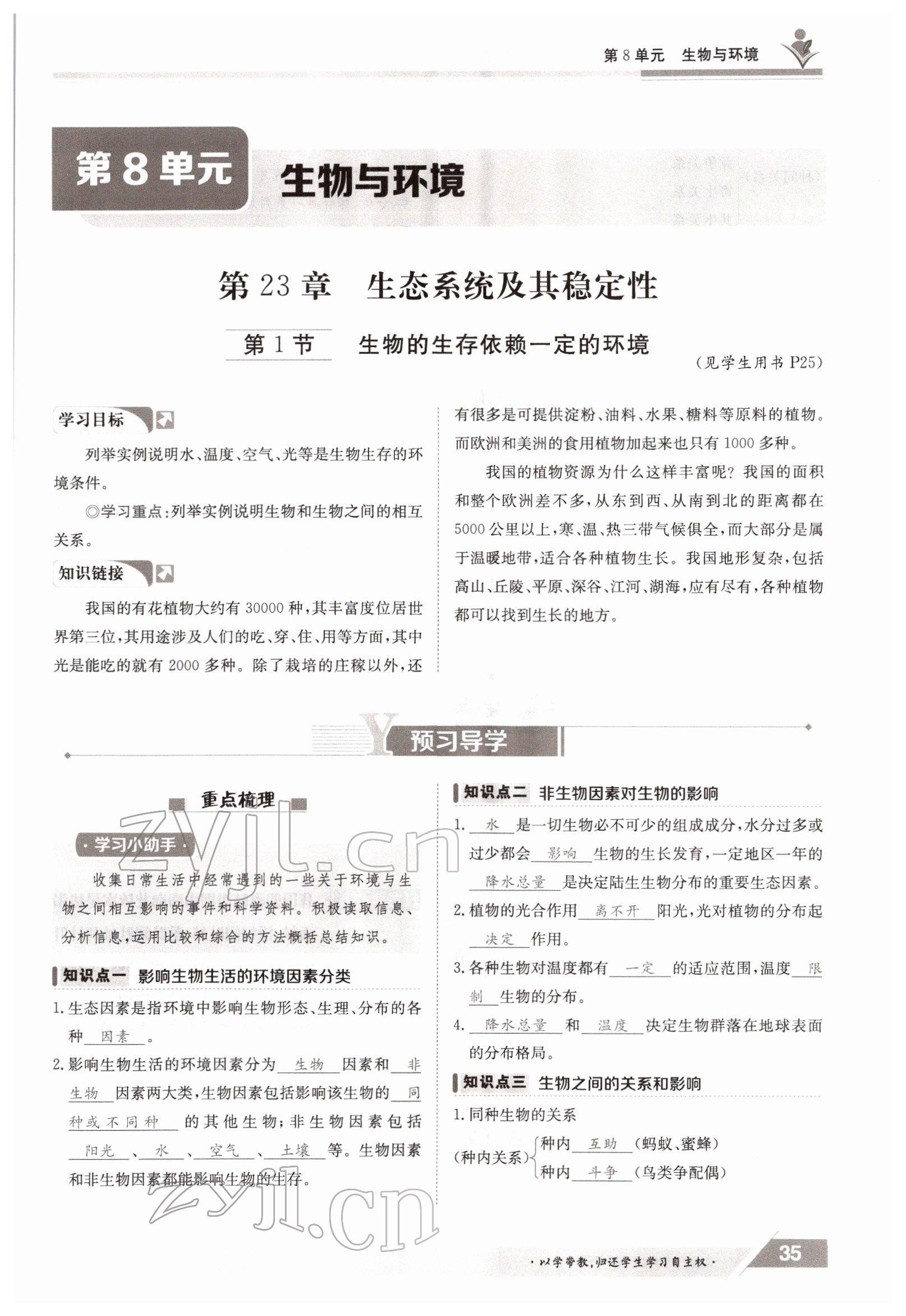 2022年金太阳导学测评八年级生物下册北师大版