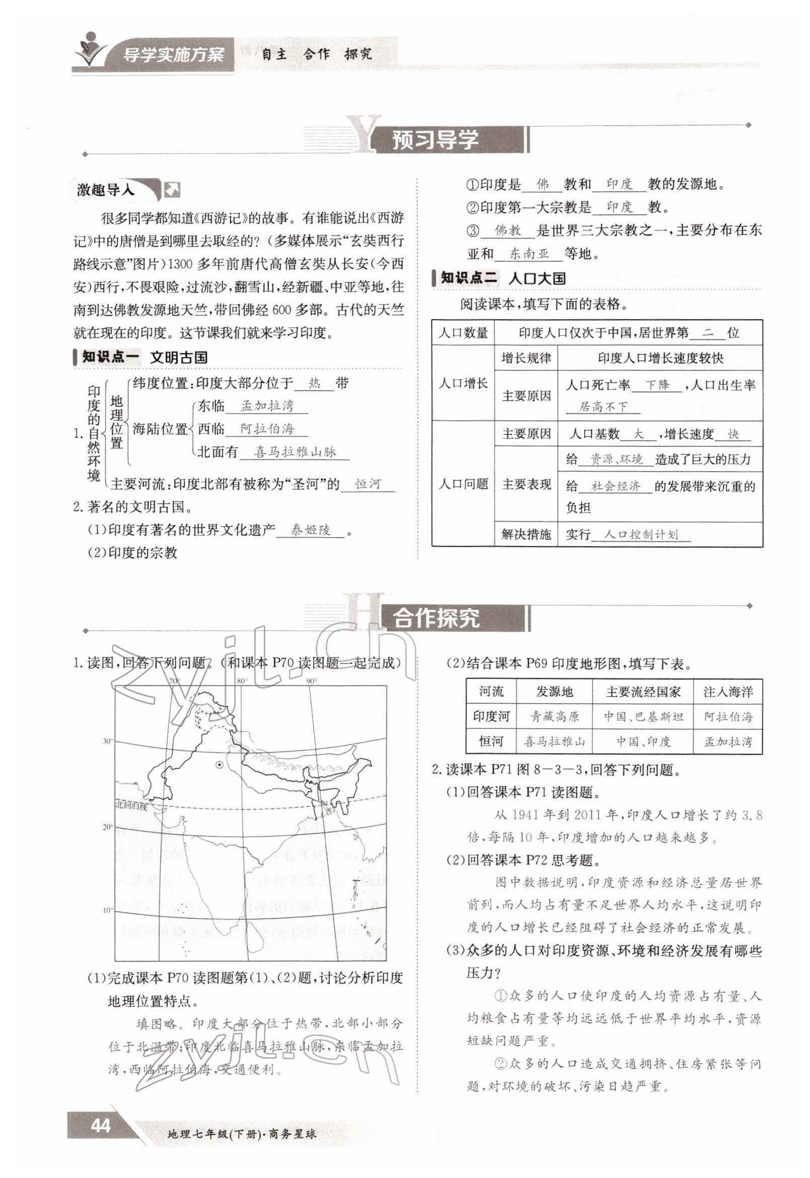 2022年金太阳导学测评七年级地理下册商务星球版