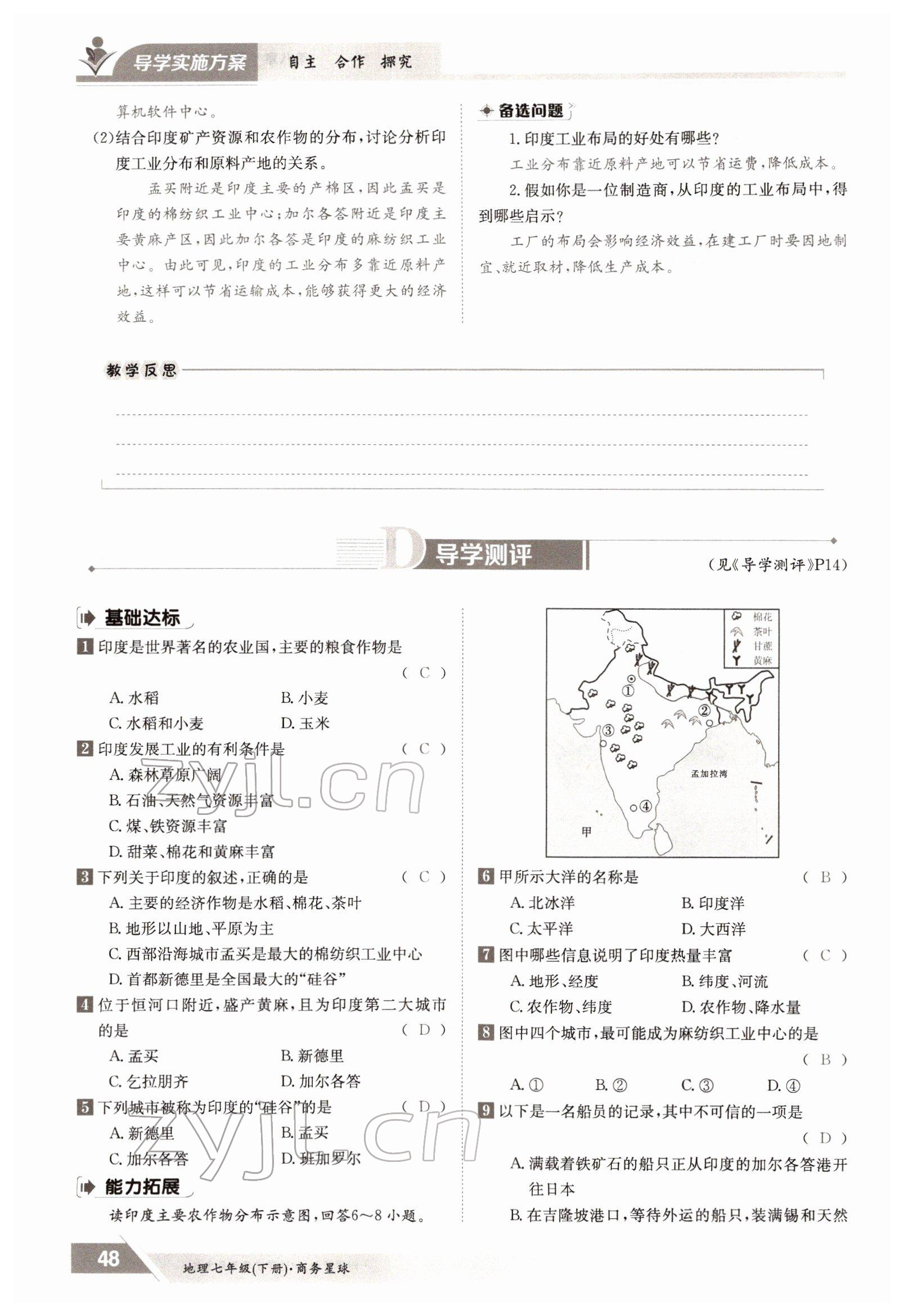注:目前有些书本章节名称可能整理的还不是很完善,但都是按照顺序排列的,请同学们按照顺序仔细查找。练习册 2022年金太阳导学测评七年级地理下册商务星球版 答案主要是用来给同学们做完题方便对答案用的,请勿直接抄袭。