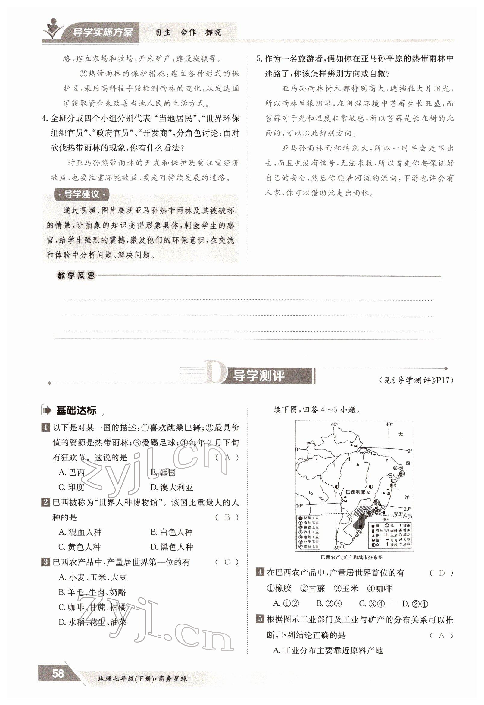 2022年金太阳导学测评七年级地理下册商务星球版