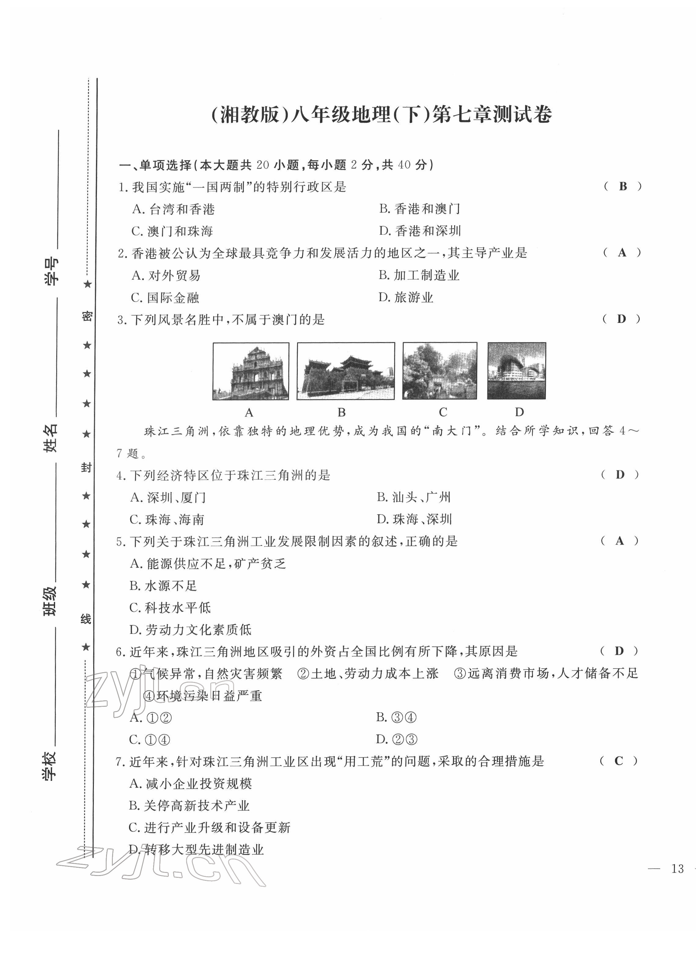 注:目前有些书本章节名称可能整理的还不是很完善,但都是按照顺序排列的,请同学们按照顺序仔细查找。练习册 2022年绩优课堂高效提升满分备考八年级地理下册湘教版 答案主要是用来给同学们做完题方便对答案用的,请勿直接抄袭。