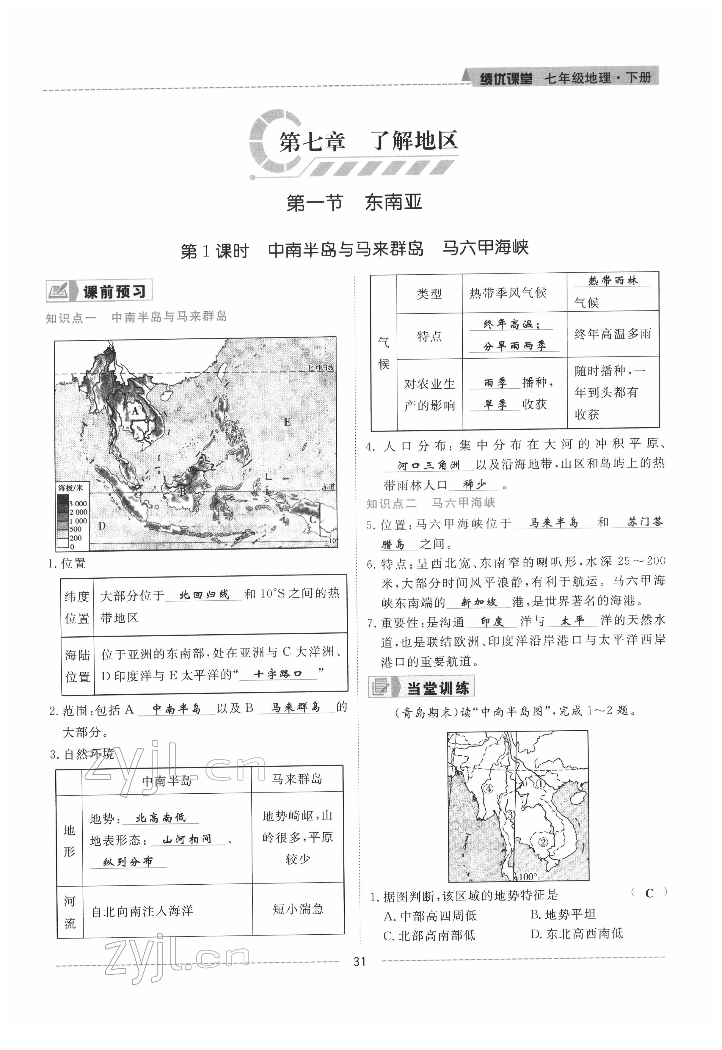 2022年绩优课堂高效提升满分备考七年级地理下册湘教版
