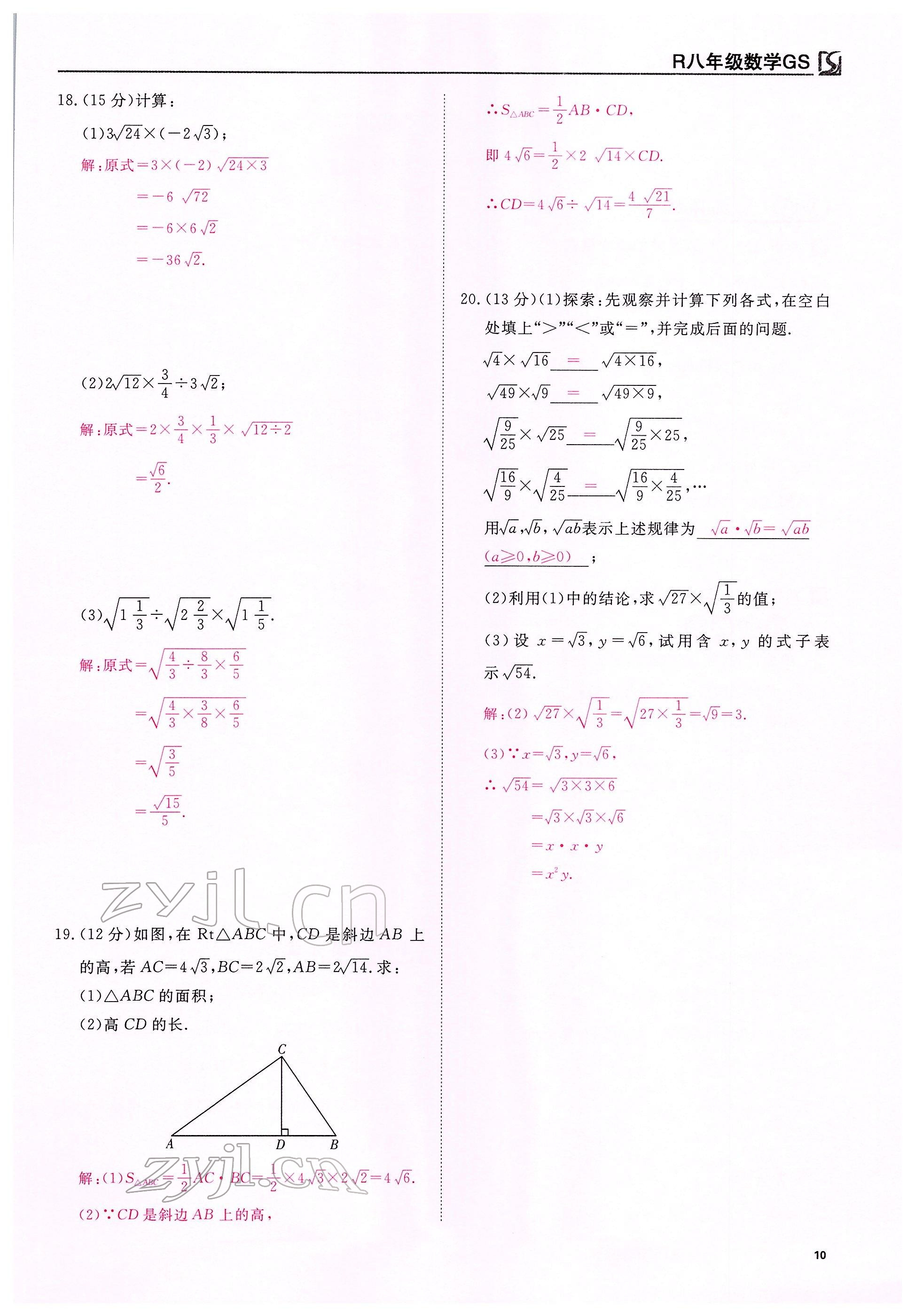 注:目前有些书本章节名称可能整理的还不是很完善,但都是按照顺序排列的,请同学们按照顺序仔细查找。练习册 2022年我的作业八年级数学下册人教版甘肃专版 答案主要是用来给同学们做完题方便对答案用的,请勿直接抄袭。