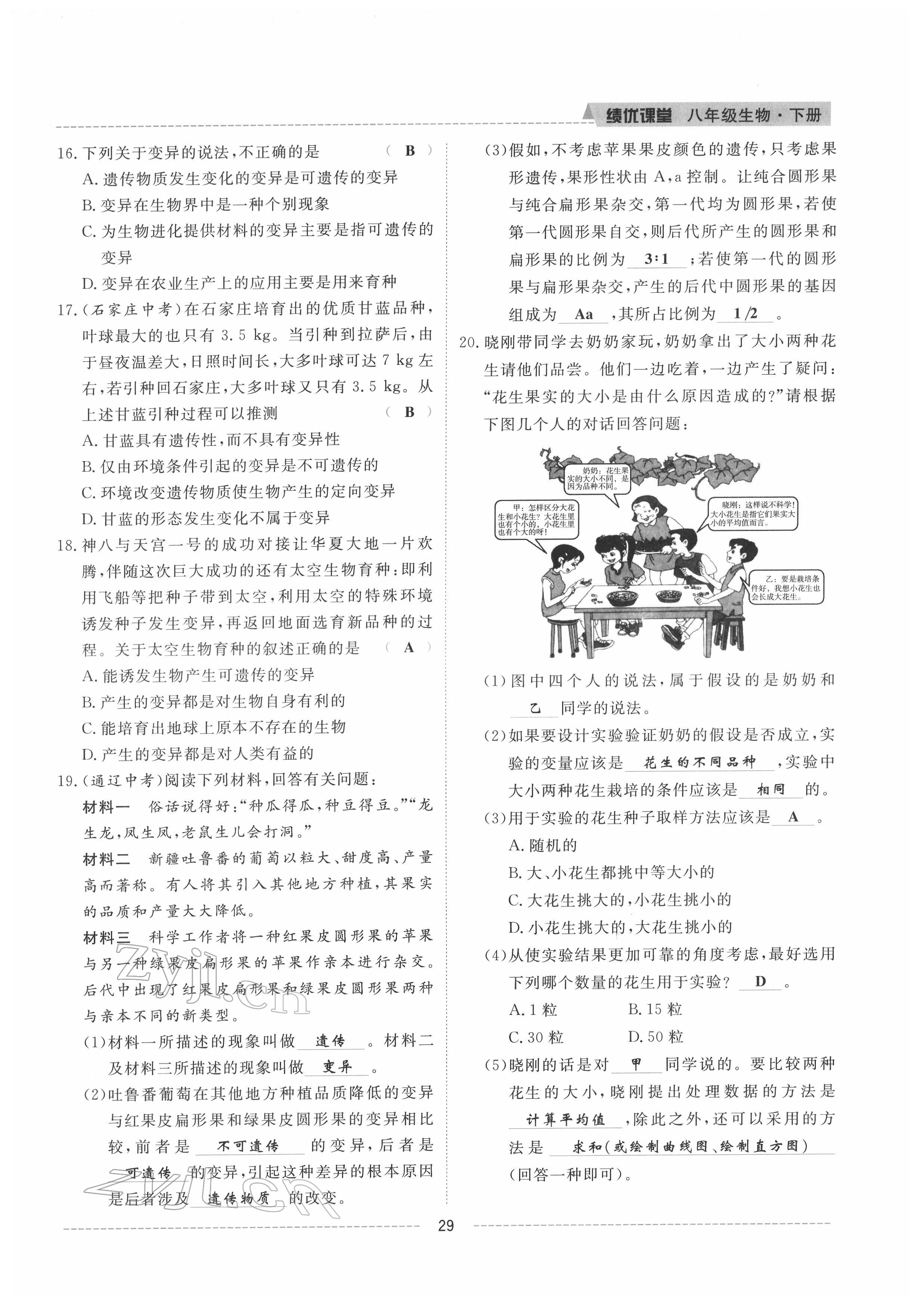 注:目前有些书本章节名称可能整理的还不是很完善,但都是按照顺序排列的,请同学们按照顺序仔细查找。练习册 2022年绩优课堂高效提升满分备考八年级生物下册冀少版 答案主要是用来给同学们做完题方便对答案用的,请勿直接抄袭。