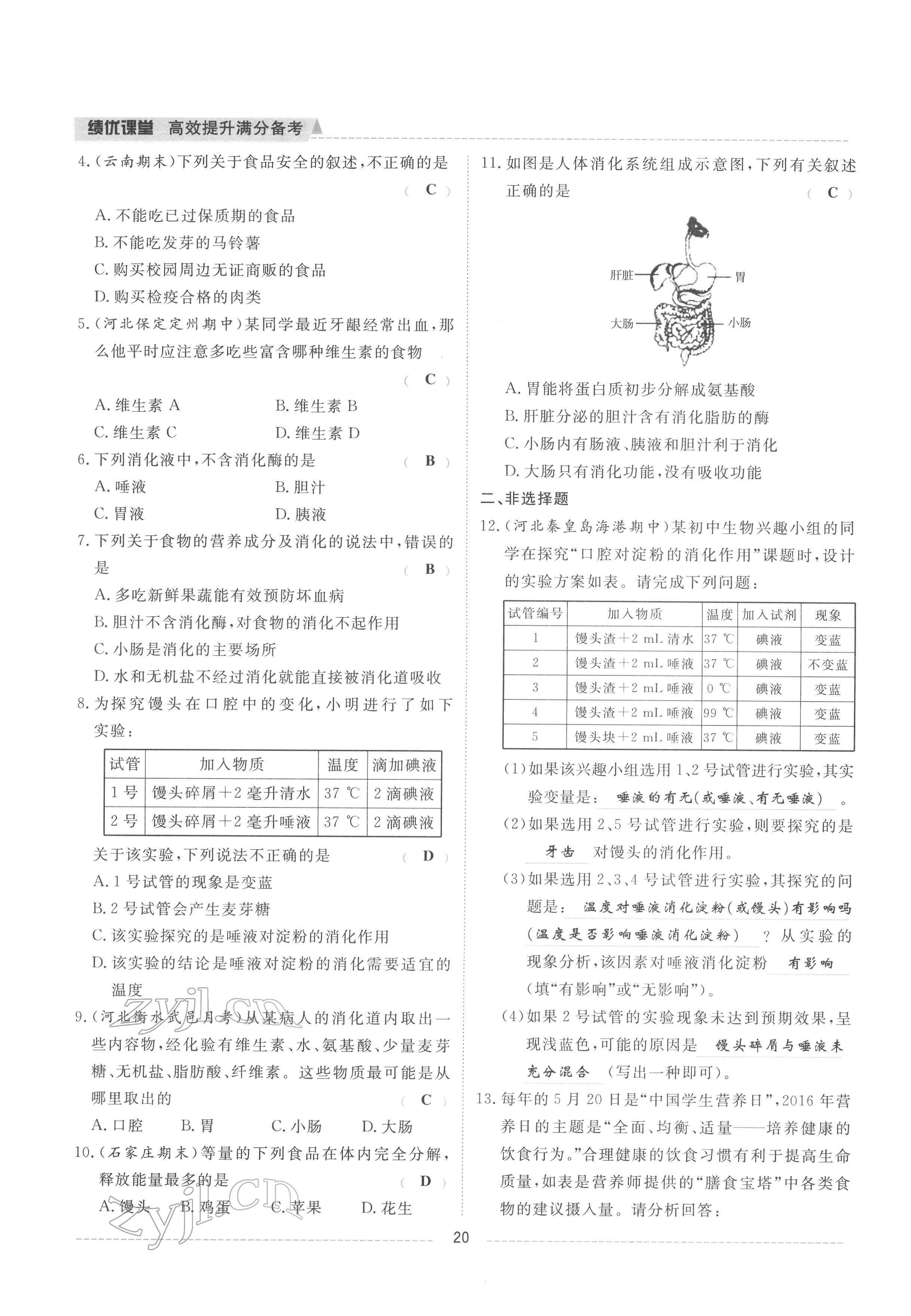 注:目前有些书本章节名称可能整理的还不是很完善,但都是按照顺序排列的,请同学们按照顺序仔细查找。练习册 2022年绩优课堂高效提升满分备考七年级生物下册冀少版 答案主要是用来给同学们做完题方便对答案用的,请勿直接抄袭。