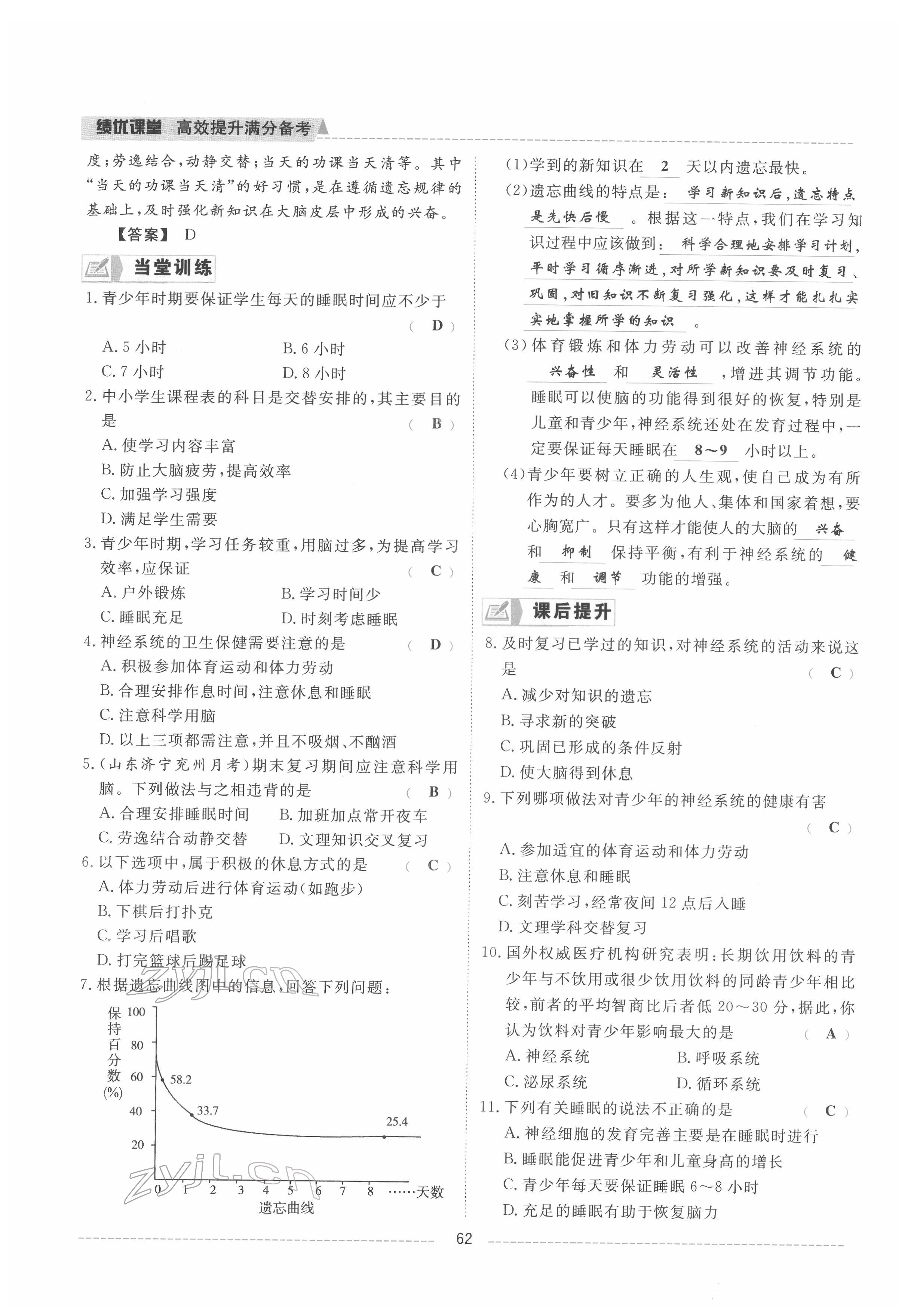 注:目前有些书本章节名称可能整理的还不是很完善,但都是按照顺序排列的,请同学们按照顺序仔细查找。练习册 2022年绩优课堂高效提升满分备考七年级生物下册冀少版 答案主要是用来给同学们做完题方便对答案用的,请勿直接抄袭。