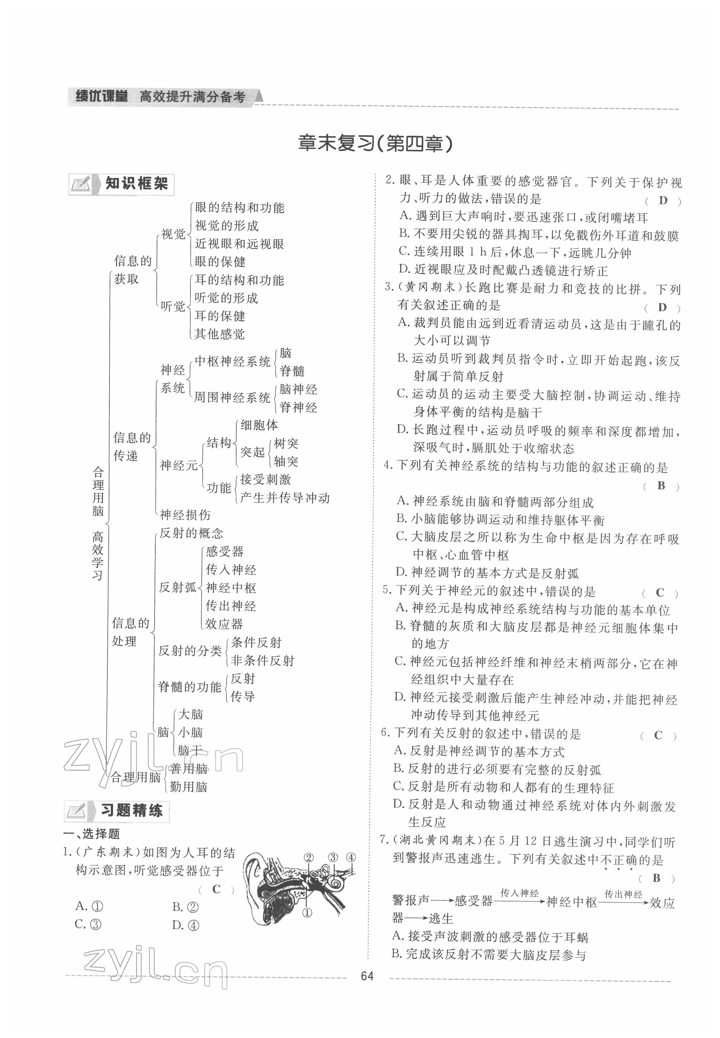 注:目前有些书本章节名称可能整理的还不是很完善,但都是按照顺序排列的,请同学们按照顺序仔细查找。练习册 2022年绩优课堂高效提升满分备考七年级生物下册冀少版 答案主要是用来给同学们做完题方便对答案用的,请勿直接抄袭。