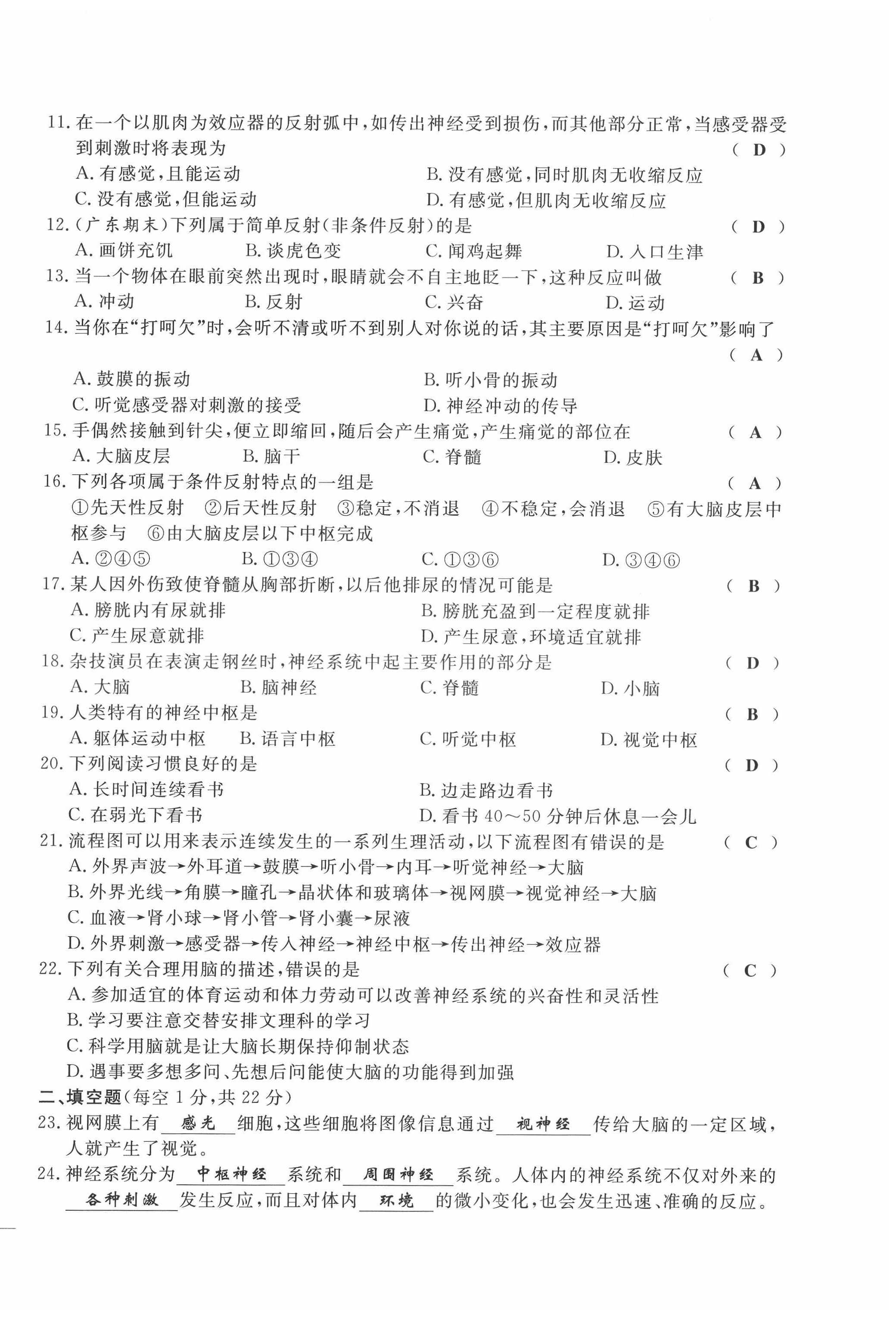 注:目前有些书本章节名称可能整理的还不是很完善,但都是按照顺序排列的,请同学们按照顺序仔细查找。练习册 2022年绩优课堂高效提升满分备考七年级生物下册冀少版 答案主要是用来给同学们做完题方便对答案用的,请勿直接抄袭。