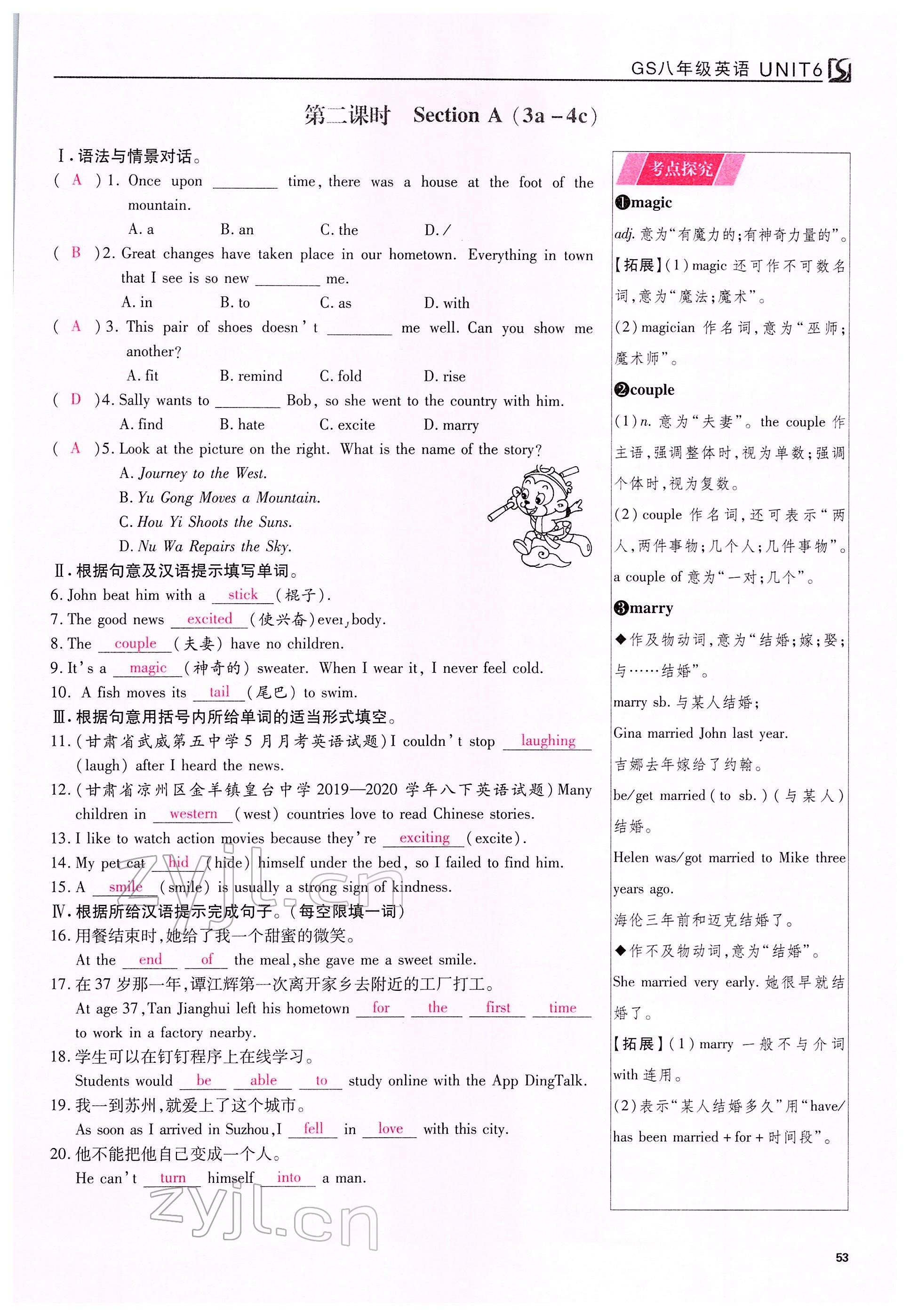 注:目前有些书本章节名称可能整理的还不是很完善,但都是按照顺序排列的,请同学们按照顺序仔细查找。练习册 2022年我的作业八年级英语下册人教版甘肃专版 答案主要是用来给同学们做完题方便对答案用的,请勿直接抄袭。
