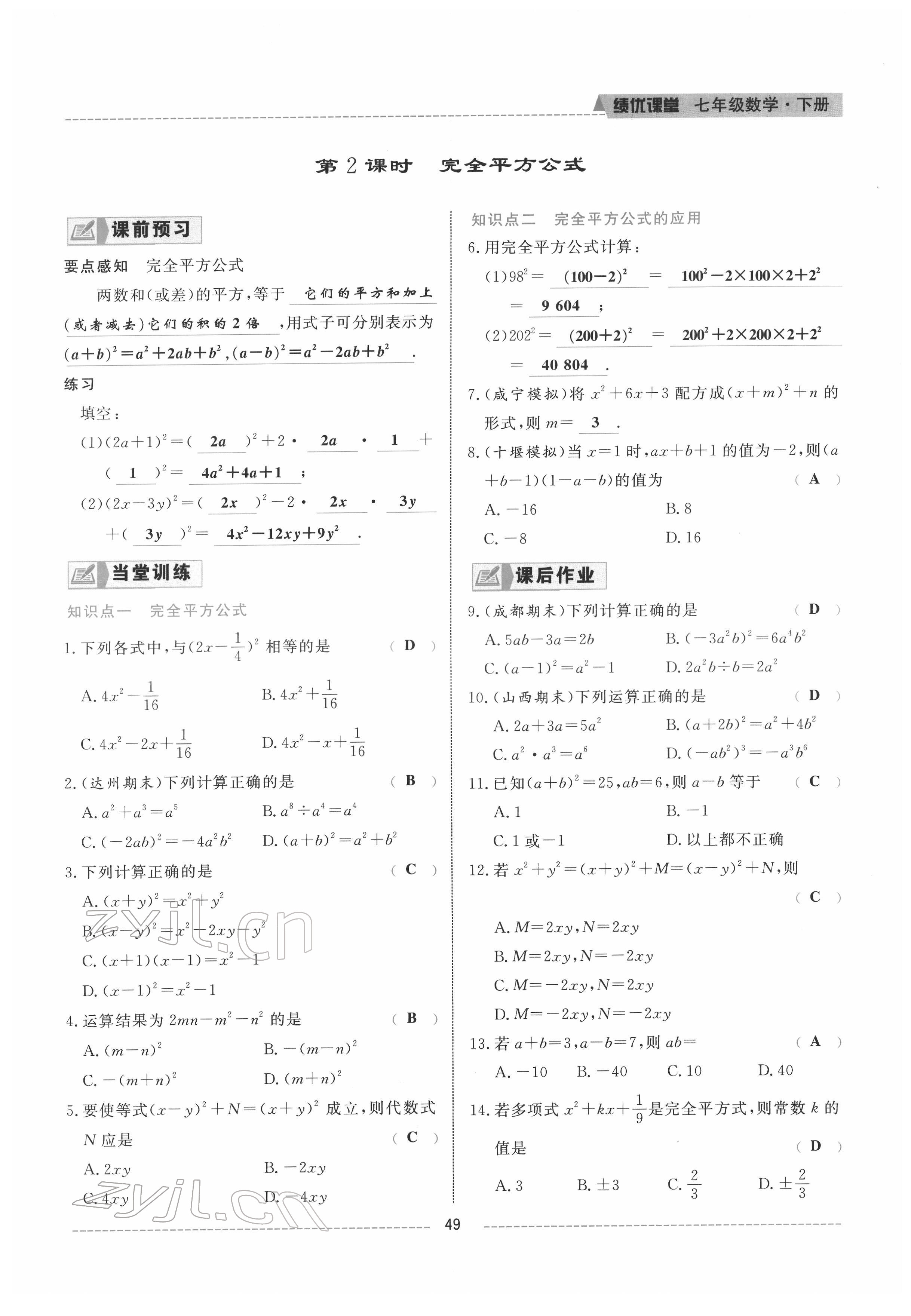 参考答案第49页
