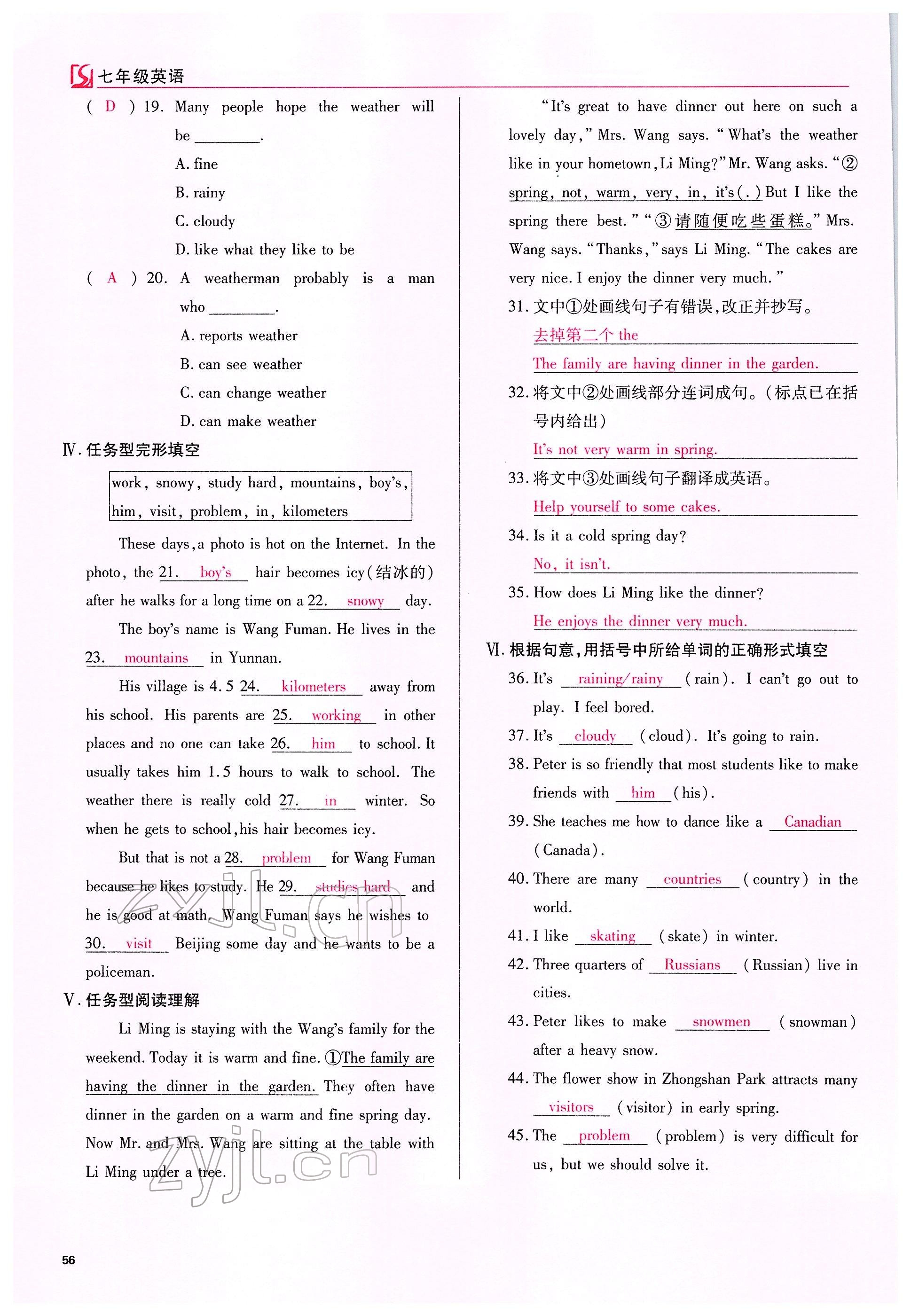 注:目前有些书本章节名称可能整理的还不是很完善,但都是按照顺序排列的,请同学们按照顺序仔细查找。练习册 2022年我的作业七年级英语下册人教版甘肃专版 答案主要是用来给同学们做完题方便对答案用的,请勿直接抄袭。