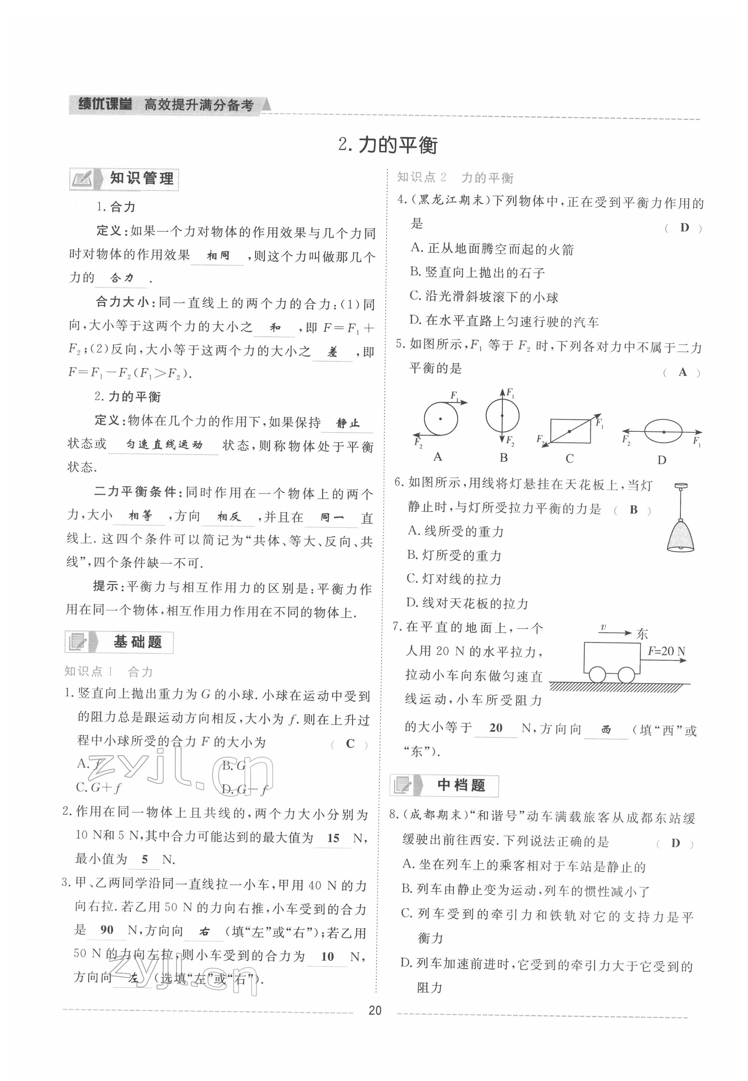 2022年绩优课堂高效提升满分备考八年级物理下册教科版