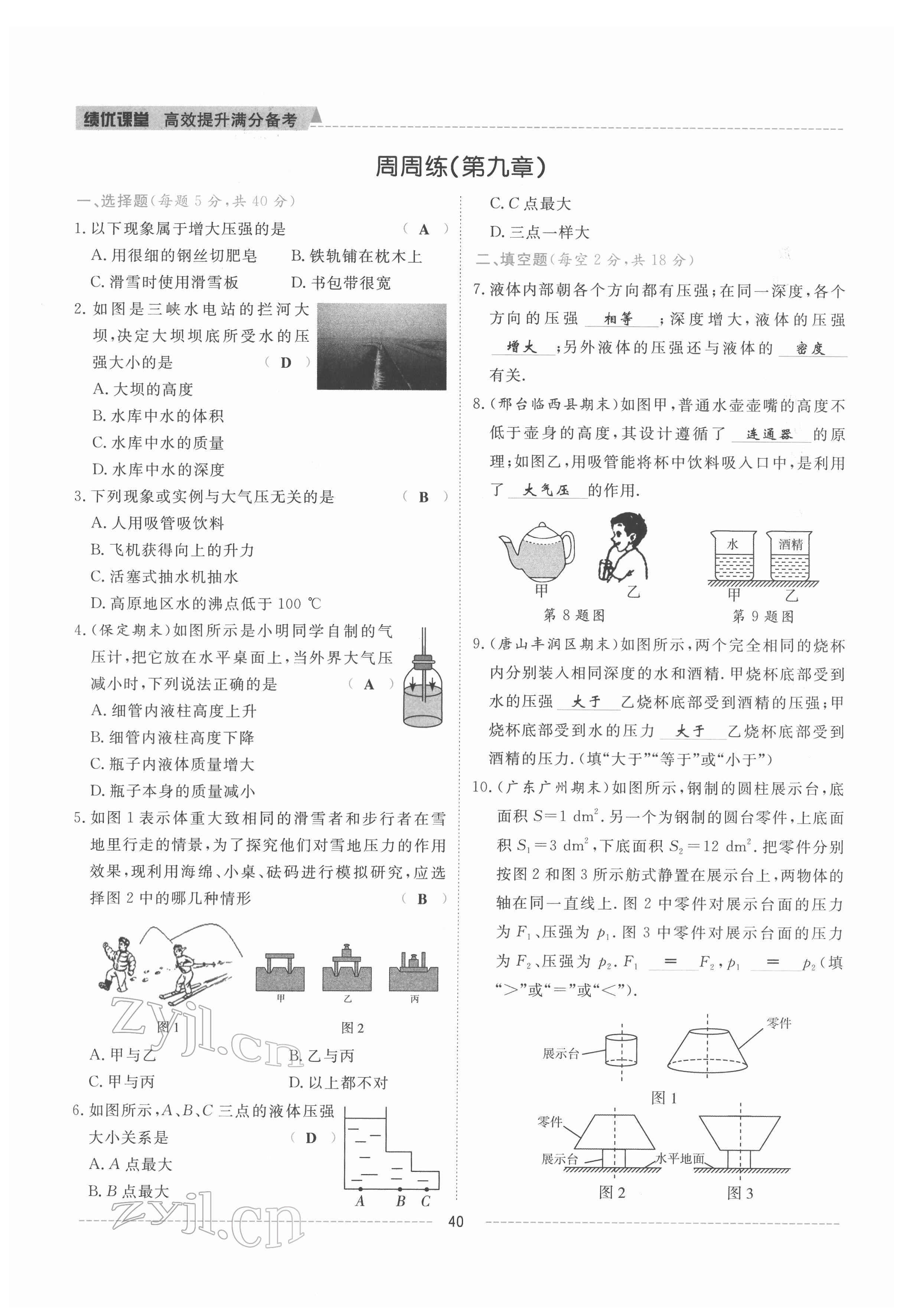 2022年绩优课堂高效提升满分备考八年级物理下册教科版