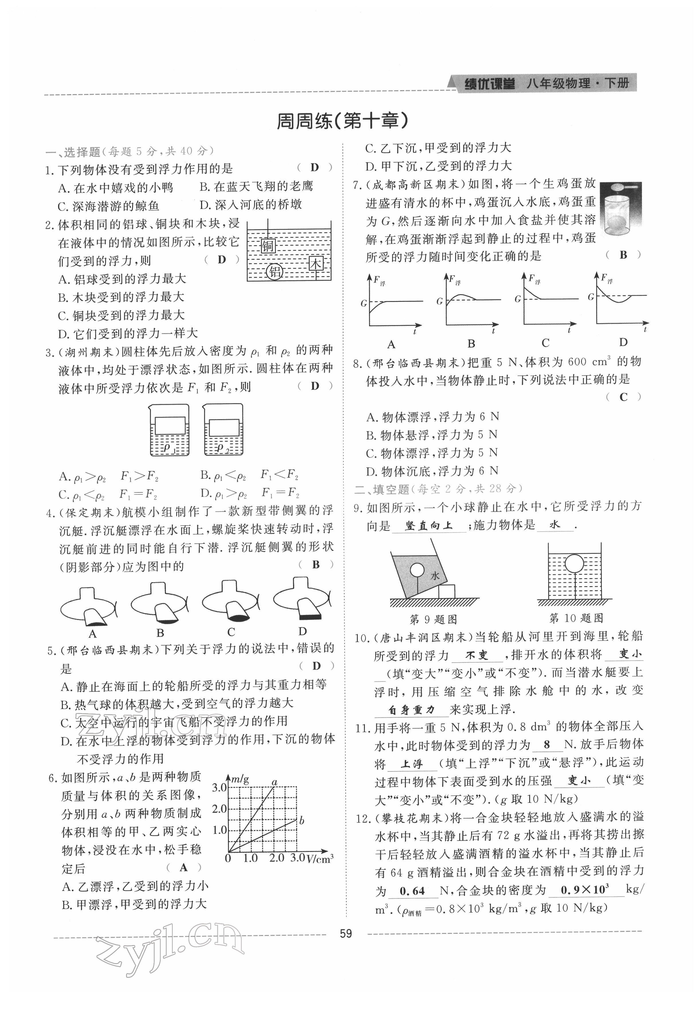 注:目前有些书本章节名称可能整理的还不是很完善,但都是按照顺序排列的,请同学们按照顺序仔细查找。练习册 2022年绩优课堂高效提升满分备考八年级物理下册教科版 答案主要是用来给同学们做完题方便对答案用的,请勿直接抄袭。