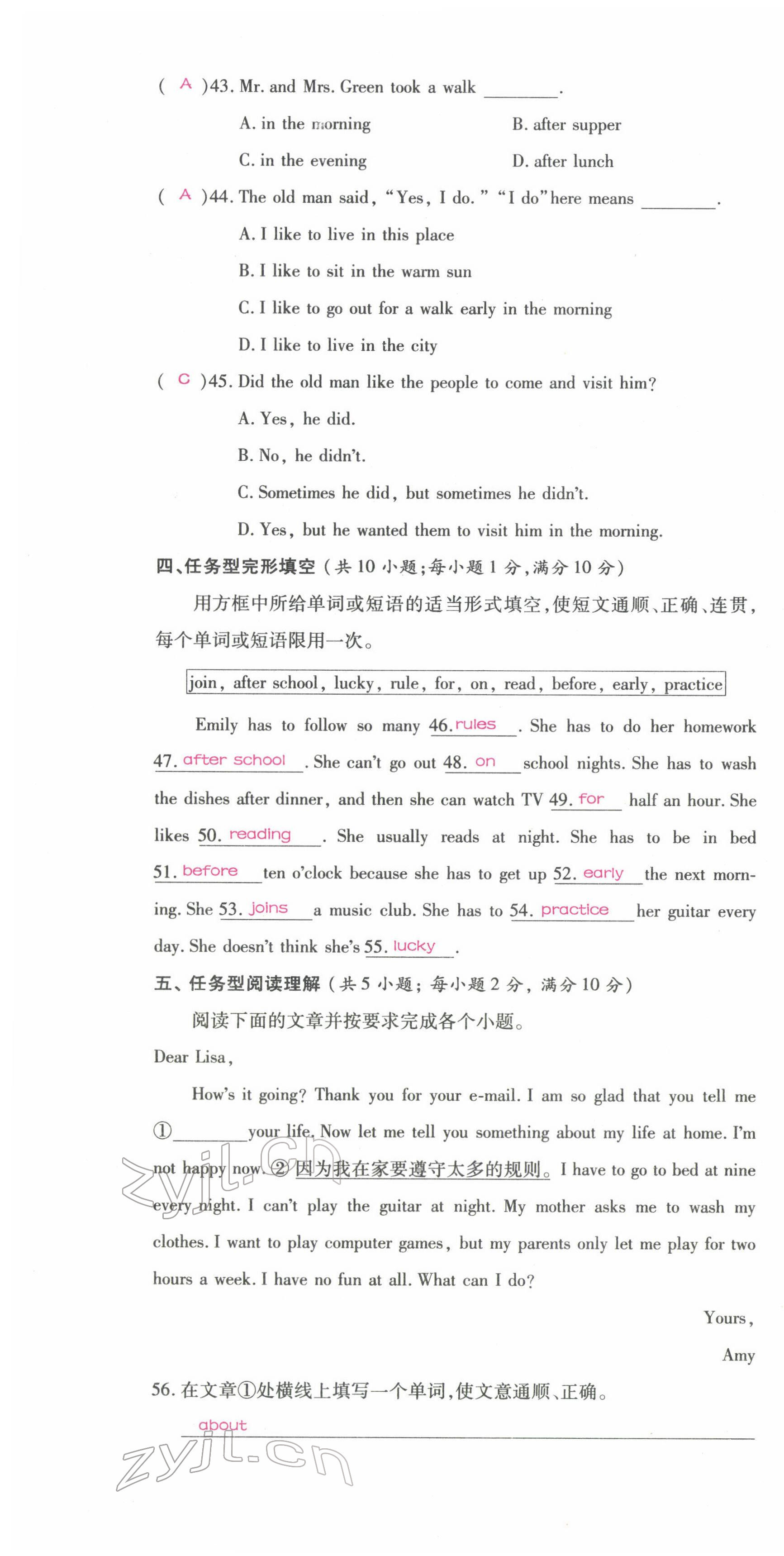 注:目前有些书本章节名称可能整理的还不是很完善,但都是按照顺序排列的,请同学们按照顺序仔细查找。练习册 2022年我的作业七年级英语下册人教版甘肃专版 答案主要是用来给同学们做完题方便对答案用的,请勿直接抄袭。