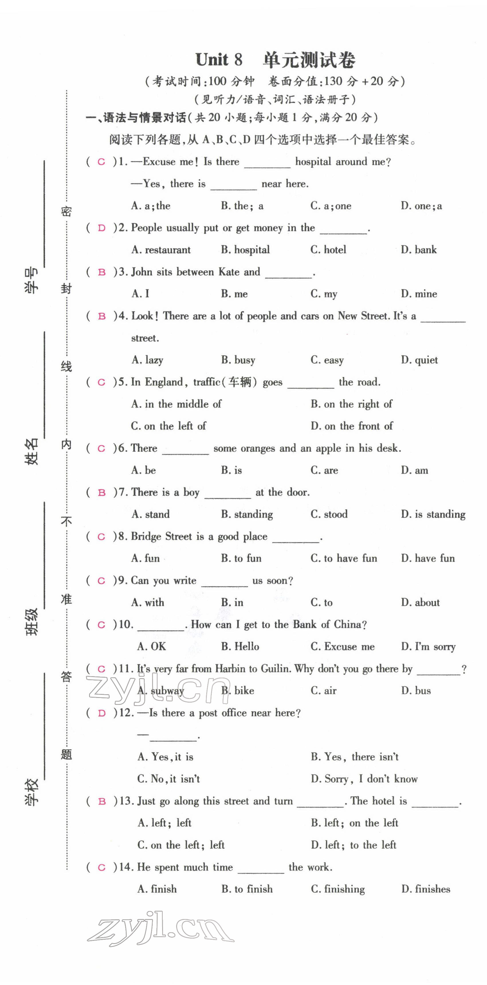 注:目前有些书本章节名称可能整理的还不是很完善,但都是按照顺序排列的,请同学们按照顺序仔细查找。练习册 2022年我的作业七年级英语下册人教版甘肃专版 答案主要是用来给同学们做完题方便对答案用的,请勿直接抄袭。