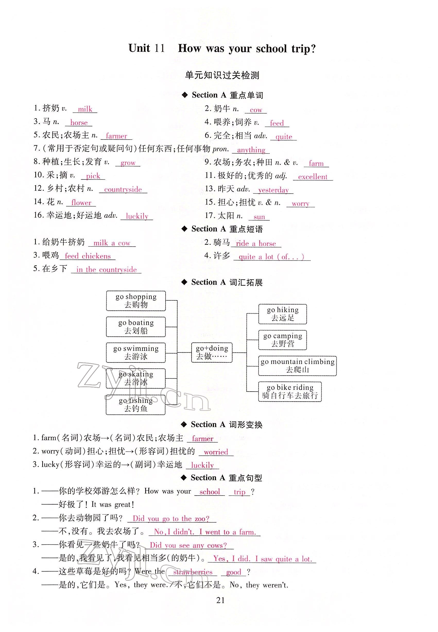 注:目前有些书本章节名称可能整理的还不是很完善,但都是按照顺序排列的,请同学们按照顺序仔细查找。练习册 2022年我的作业七年级英语下册人教版甘肃专版 答案主要是用来给同学们做完题方便对答案用的,请勿直接抄袭。