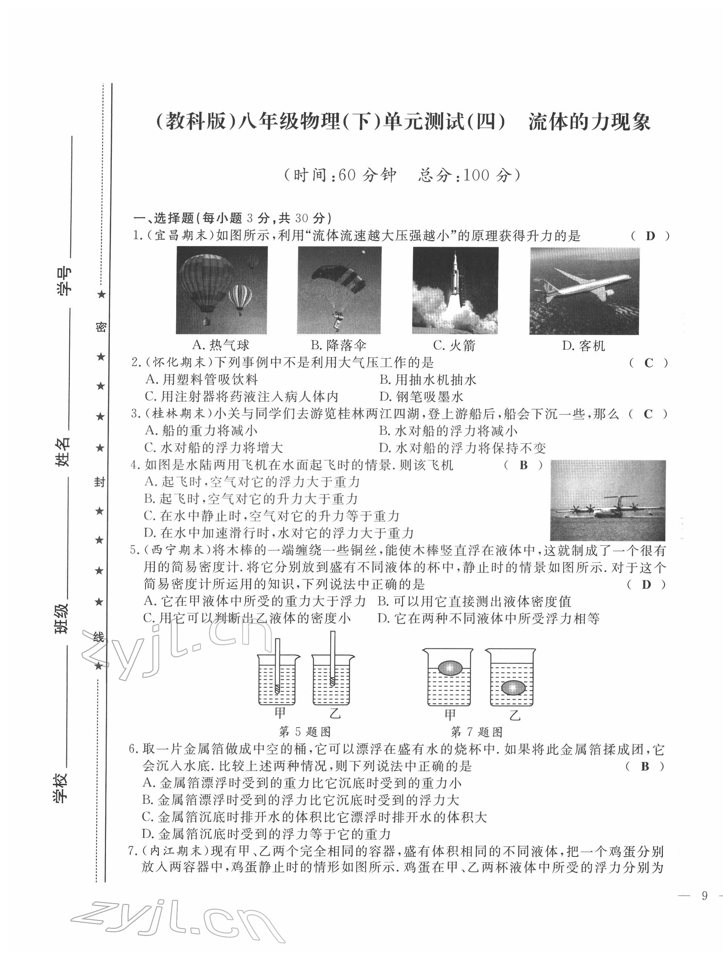 注:目前有些书本章节名称可能整理的还不是很完善,但都是按照顺序排列的,请同学们按照顺序仔细查找。练习册 2022年绩优课堂高效提升满分备考八年级物理下册教科版 答案主要是用来给同学们做完题方便对答案用的,请勿直接抄袭。