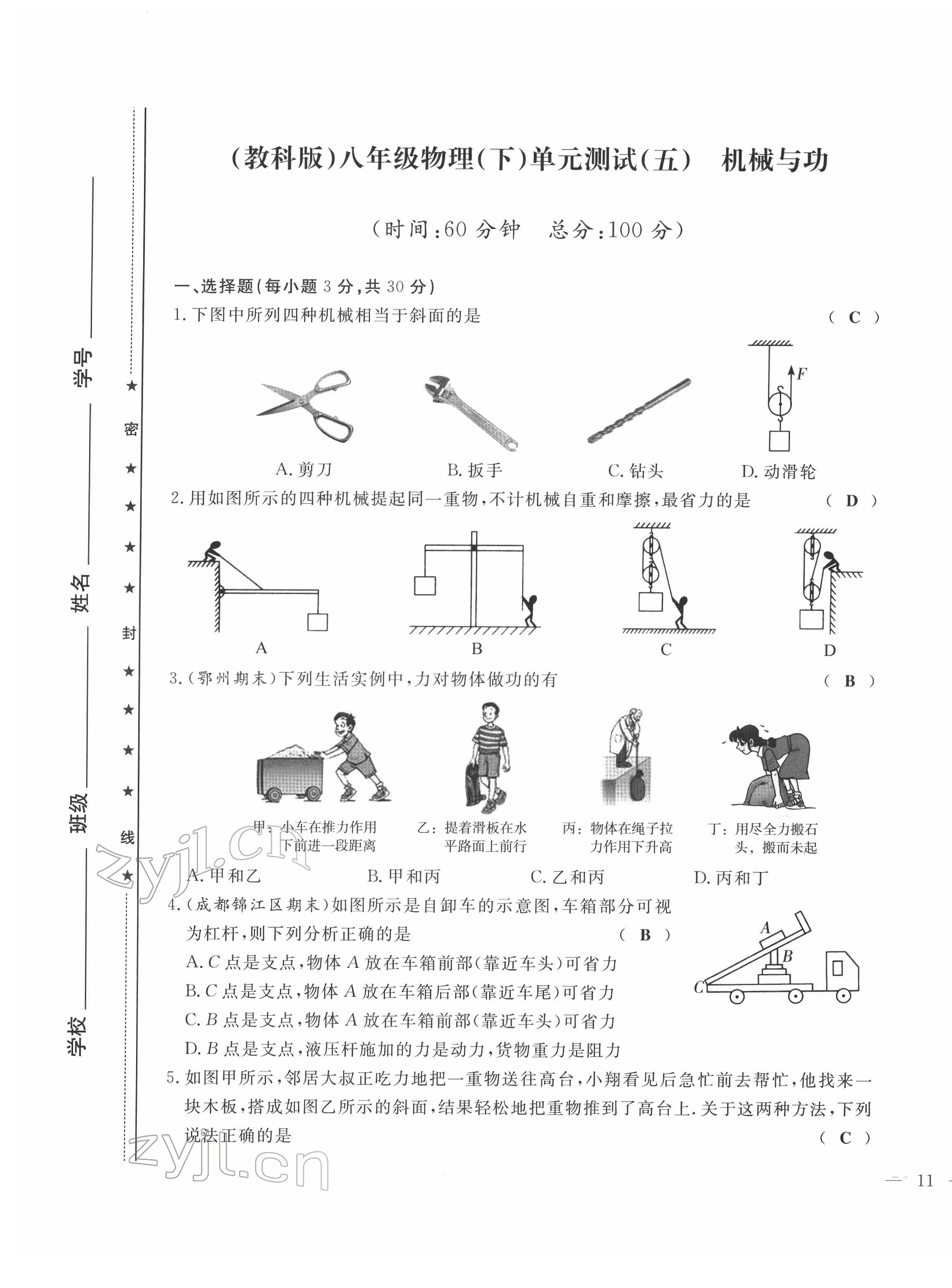 注:目前有些书本章节名称可能整理的还不是很完善,但都是按照顺序排列的,请同学们按照顺序仔细查找。练习册 2022年绩优课堂高效提升满分备考八年级物理下册教科版 答案主要是用来给同学们做完题方便对答案用的,请勿直接抄袭。