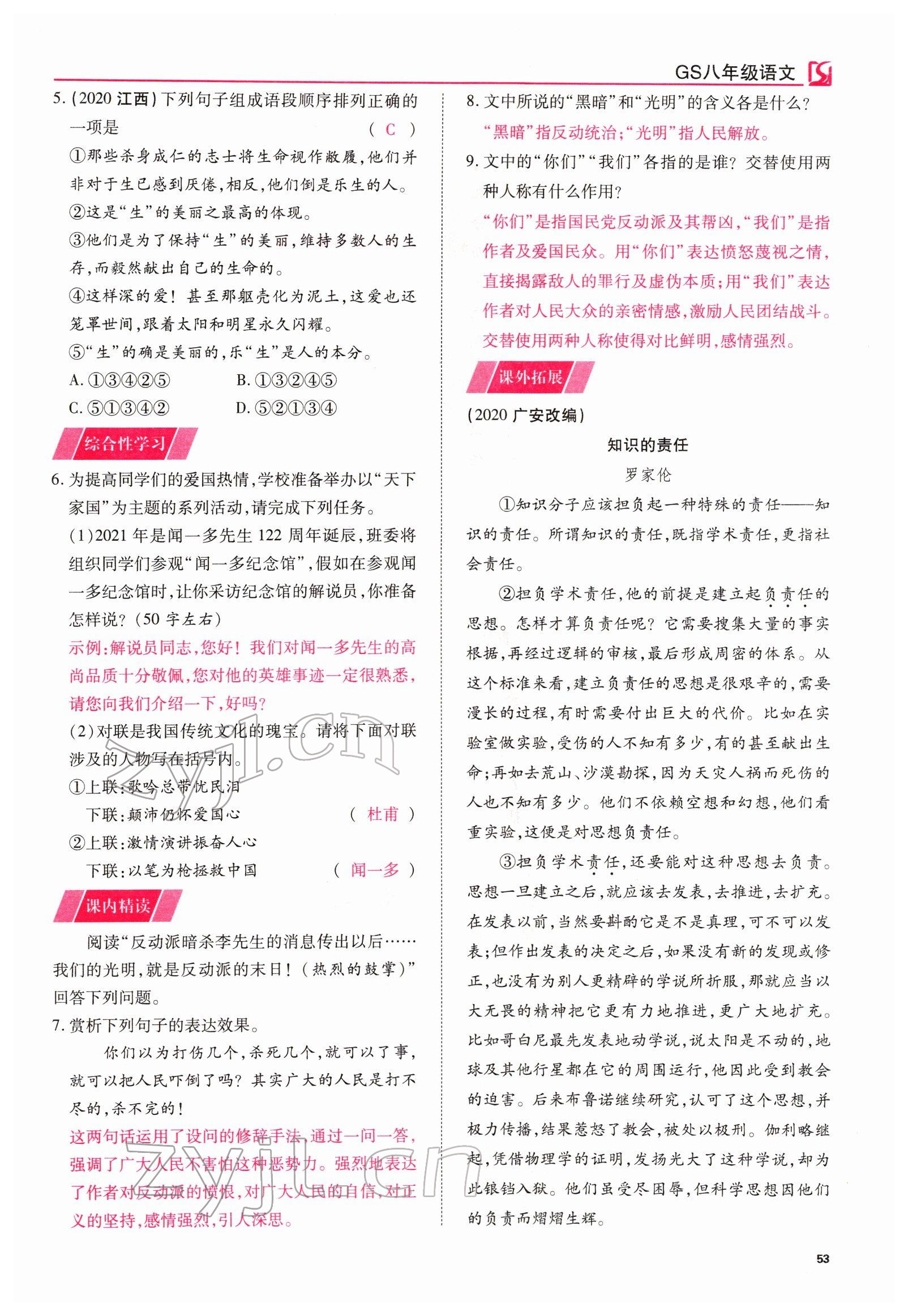 注:目前有些书本章节名称可能整理的还不是很完善,但都是按照顺序排列的,请同学们按照顺序仔细查找。练习册 2022年我的作业八年级语文下册人教版甘肃专版 答案主要是用来给同学们做完题方便对答案用的,请勿直接抄袭。