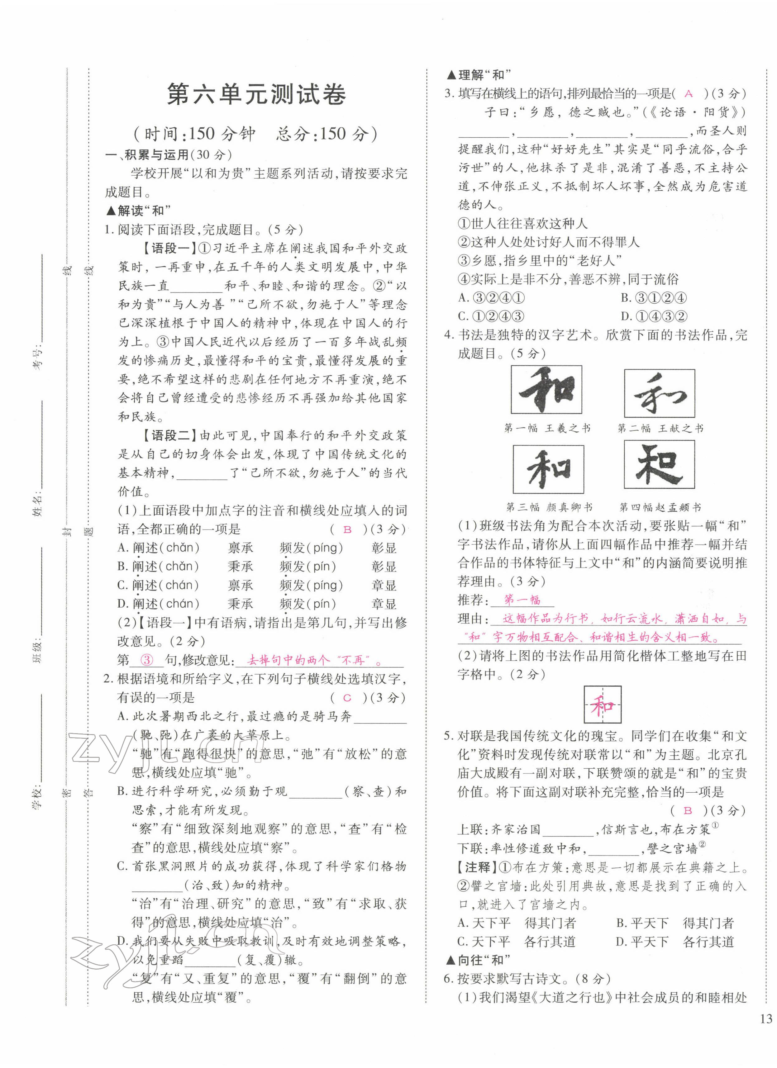 注:目前有些书本章节名称可能整理的还不是很完善,但都是按照顺序排列的,请同学们按照顺序仔细查找。练习册 2022年我的作业八年级语文下册人教版甘肃专版 答案主要是用来给同学们做完题方便对答案用的,请勿直接抄袭。