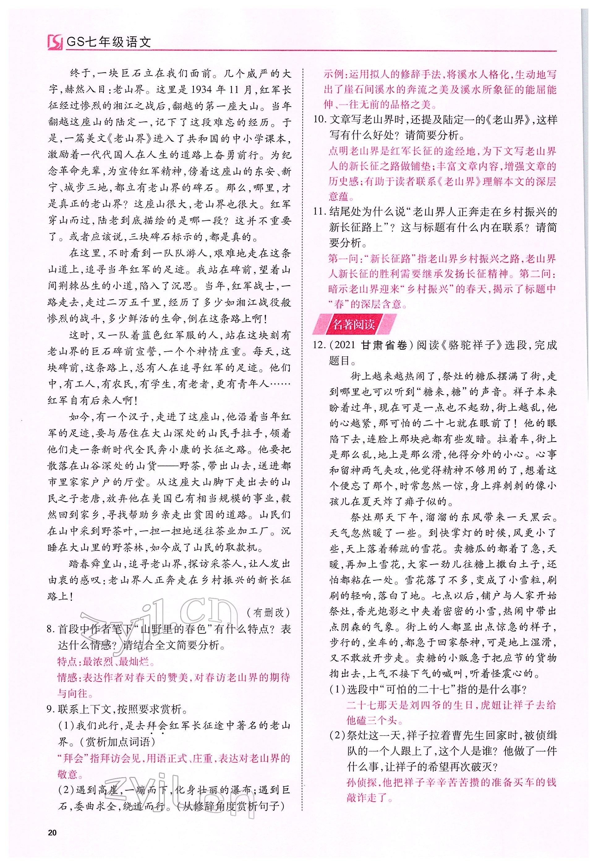 注:目前有些书本章节名称可能整理的还不是很完善,但都是按照顺序排列的,请同学们按照顺序仔细查找。练习册 2022年我的作业七年级语文下册人教版甘肃专版 答案主要是用来给同学们做完题方便对答案用的,请勿直接抄袭。