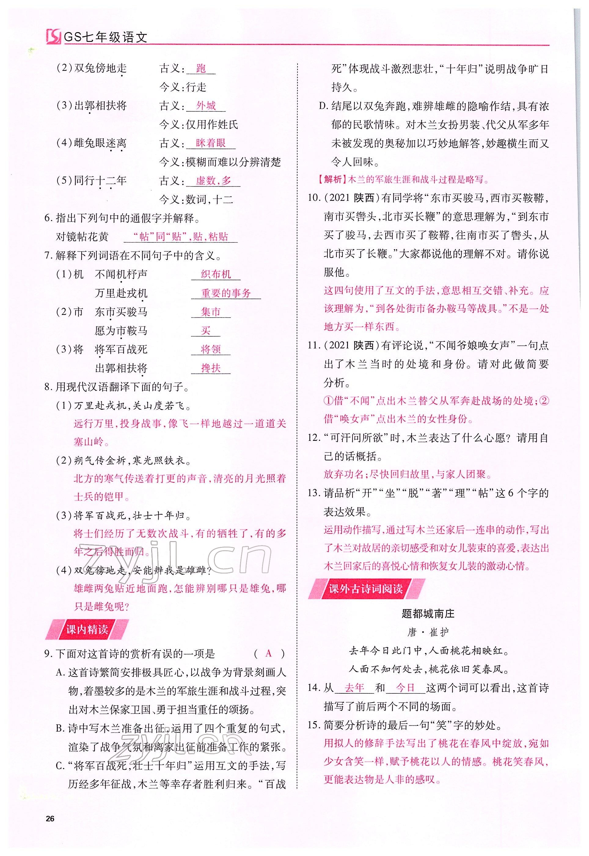 注:目前有些书本章节名称可能整理的还不是很完善,但都是按照顺序排列的,请同学们按照顺序仔细查找。练习册 2022年我的作业七年级语文下册人教版甘肃专版 答案主要是用来给同学们做完题方便对答案用的,请勿直接抄袭。