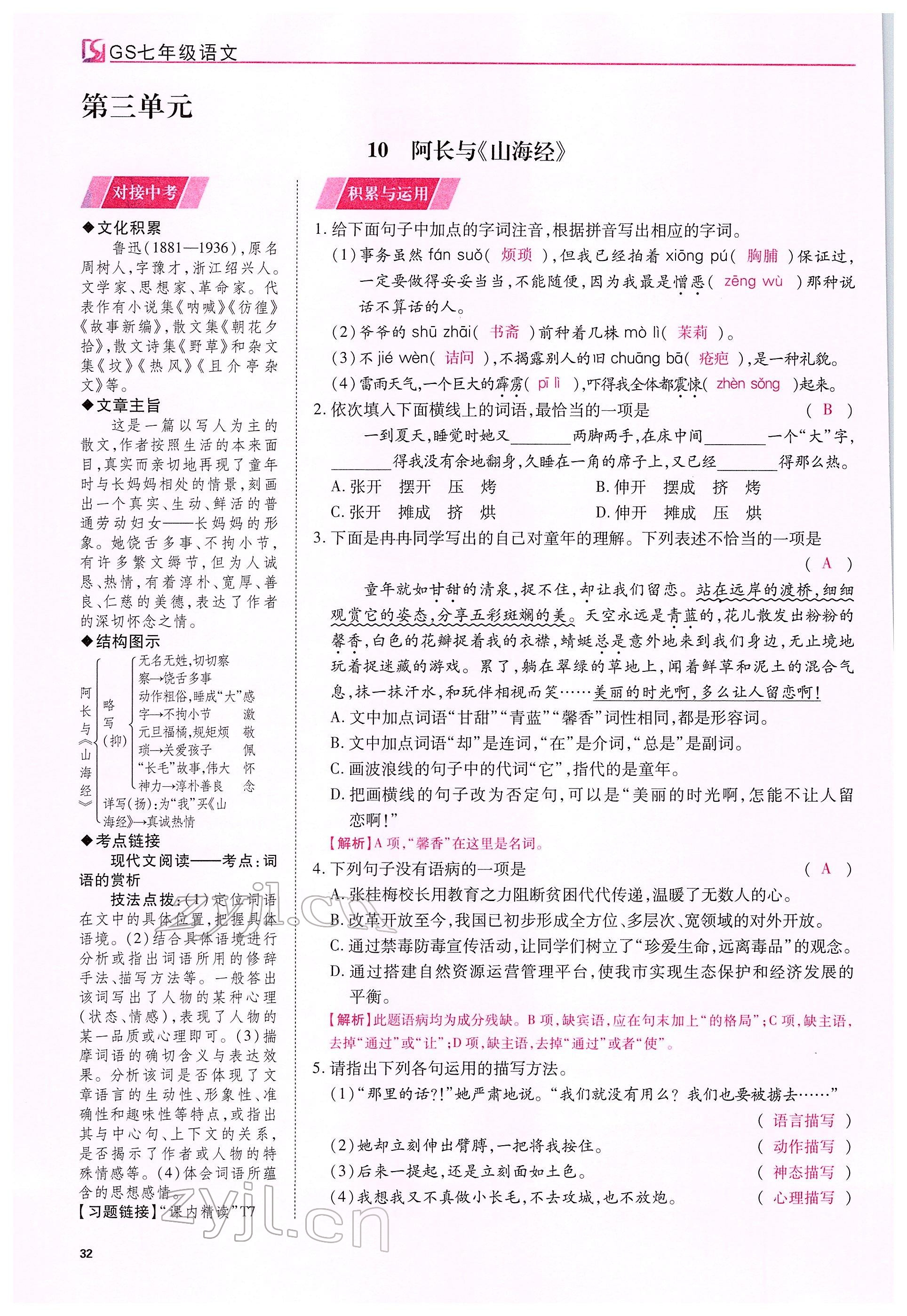 注:目前有些书本章节名称可能整理的还不是很完善,但都是按照顺序排列的,请同学们按照顺序仔细查找。练习册 2022年我的作业七年级语文下册人教版甘肃专版 答案主要是用来给同学们做完题方便对答案用的,请勿直接抄袭。