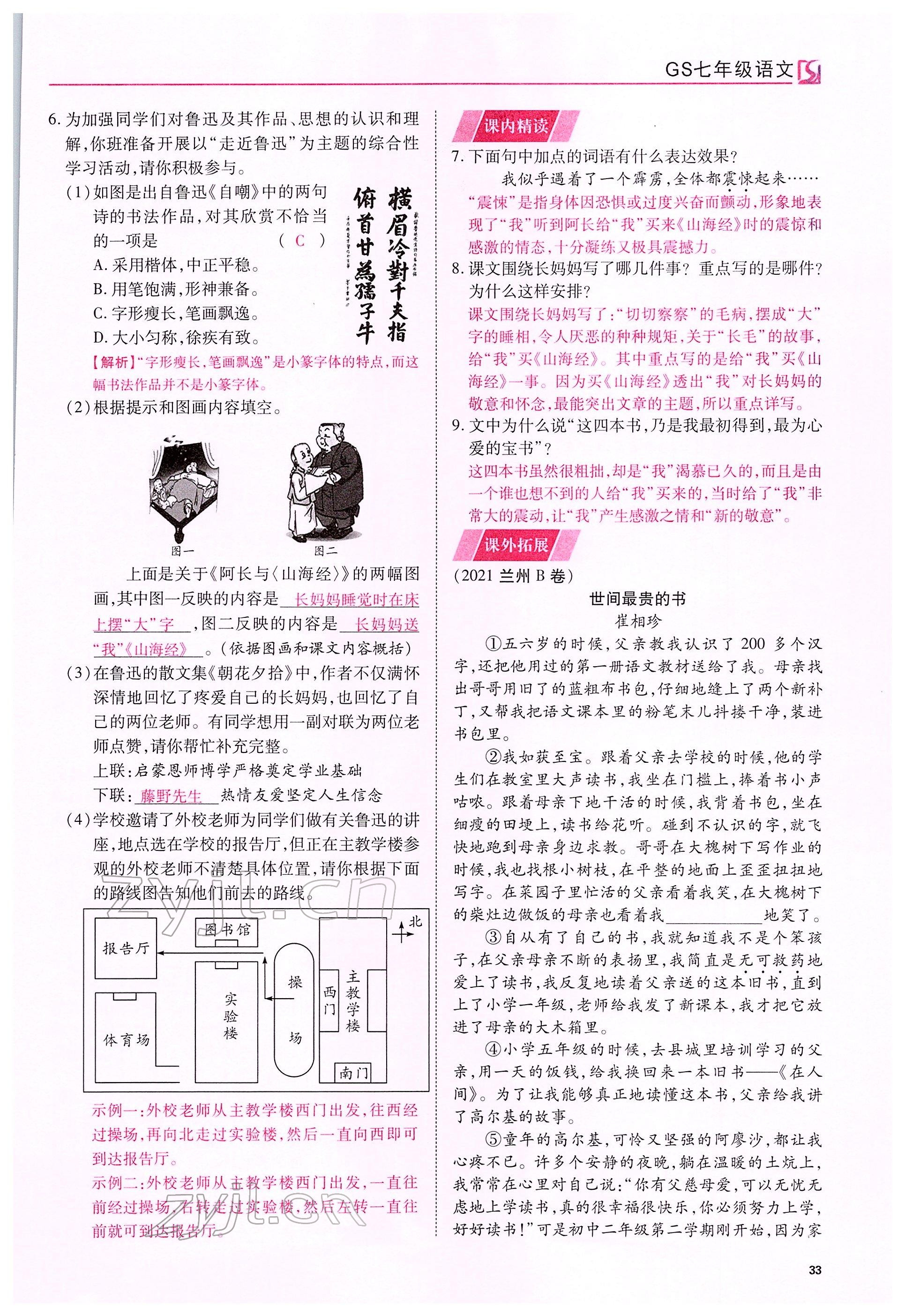 注:目前有些书本章节名称可能整理的还不是很完善,但都是按照顺序排列的,请同学们按照顺序仔细查找。练习册 2022年我的作业七年级语文下册人教版甘肃专版 答案主要是用来给同学们做完题方便对答案用的,请勿直接抄袭。