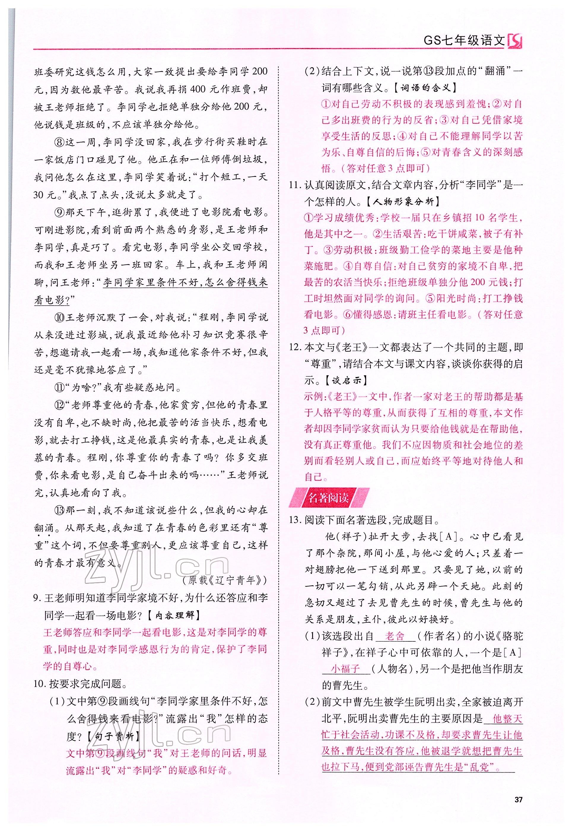 注:目前有些书本章节名称可能整理的还不是很完善,但都是按照顺序排列的,请同学们按照顺序仔细查找。练习册 2022年我的作业七年级语文下册人教版甘肃专版 答案主要是用来给同学们做完题方便对答案用的,请勿直接抄袭。