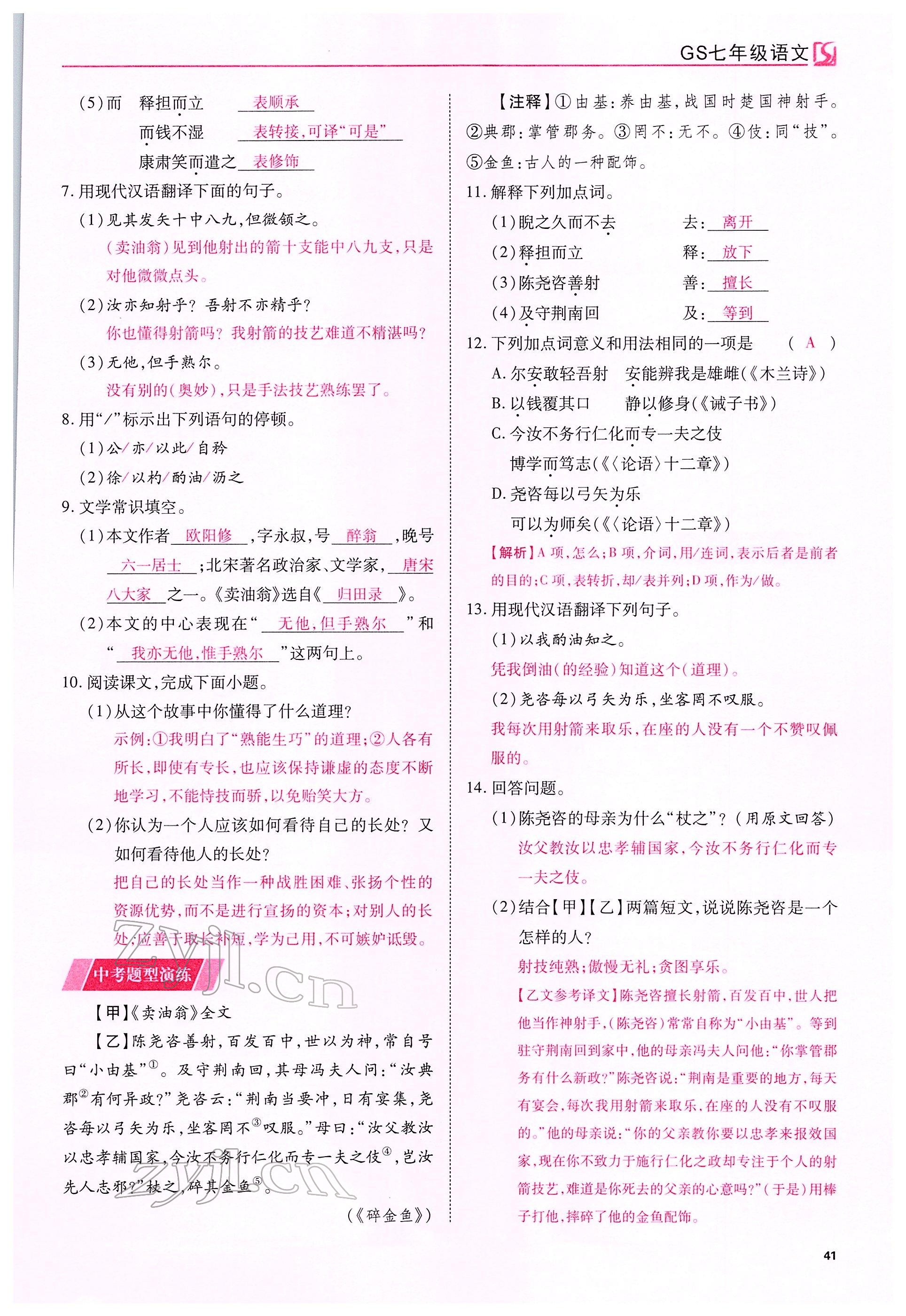 注:目前有些书本章节名称可能整理的还不是很完善,但都是按照顺序排列的,请同学们按照顺序仔细查找。练习册 2022年我的作业七年级语文下册人教版甘肃专版 答案主要是用来给同学们做完题方便对答案用的,请勿直接抄袭。