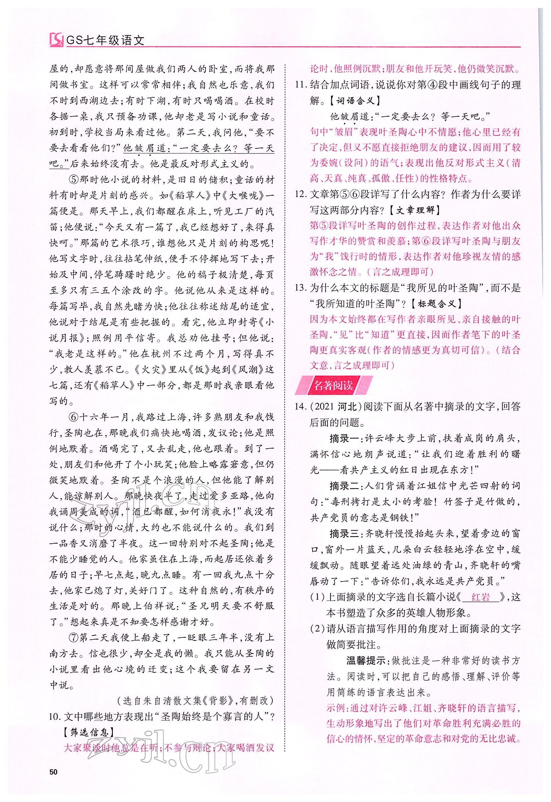 注:目前有些书本章节名称可能整理的还不是很完善,但都是按照顺序排列的,请同学们按照顺序仔细查找。练习册 2022年我的作业七年级语文下册人教版甘肃专版 答案主要是用来给同学们做完题方便对答案用的,请勿直接抄袭。