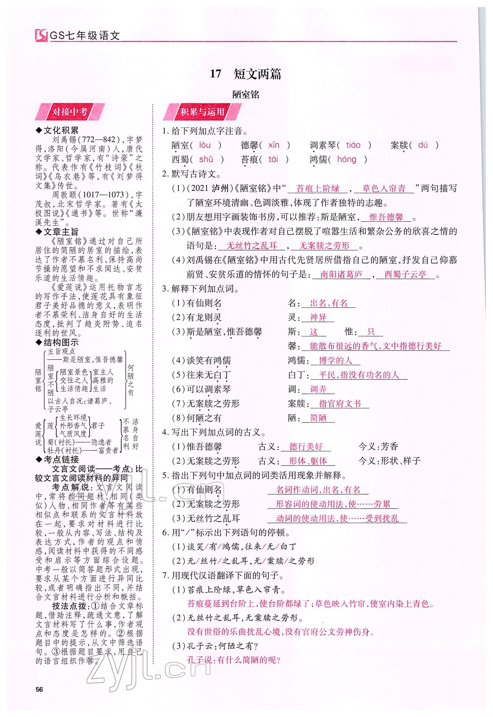注:目前有些书本章节名称可能整理的还不是很完善,但都是按照顺序排列的,请同学们按照顺序仔细查找。练习册 2022年我的作业七年级语文下册人教版甘肃专版 答案主要是用来给同学们做完题方便对答案用的,请勿直接抄袭。