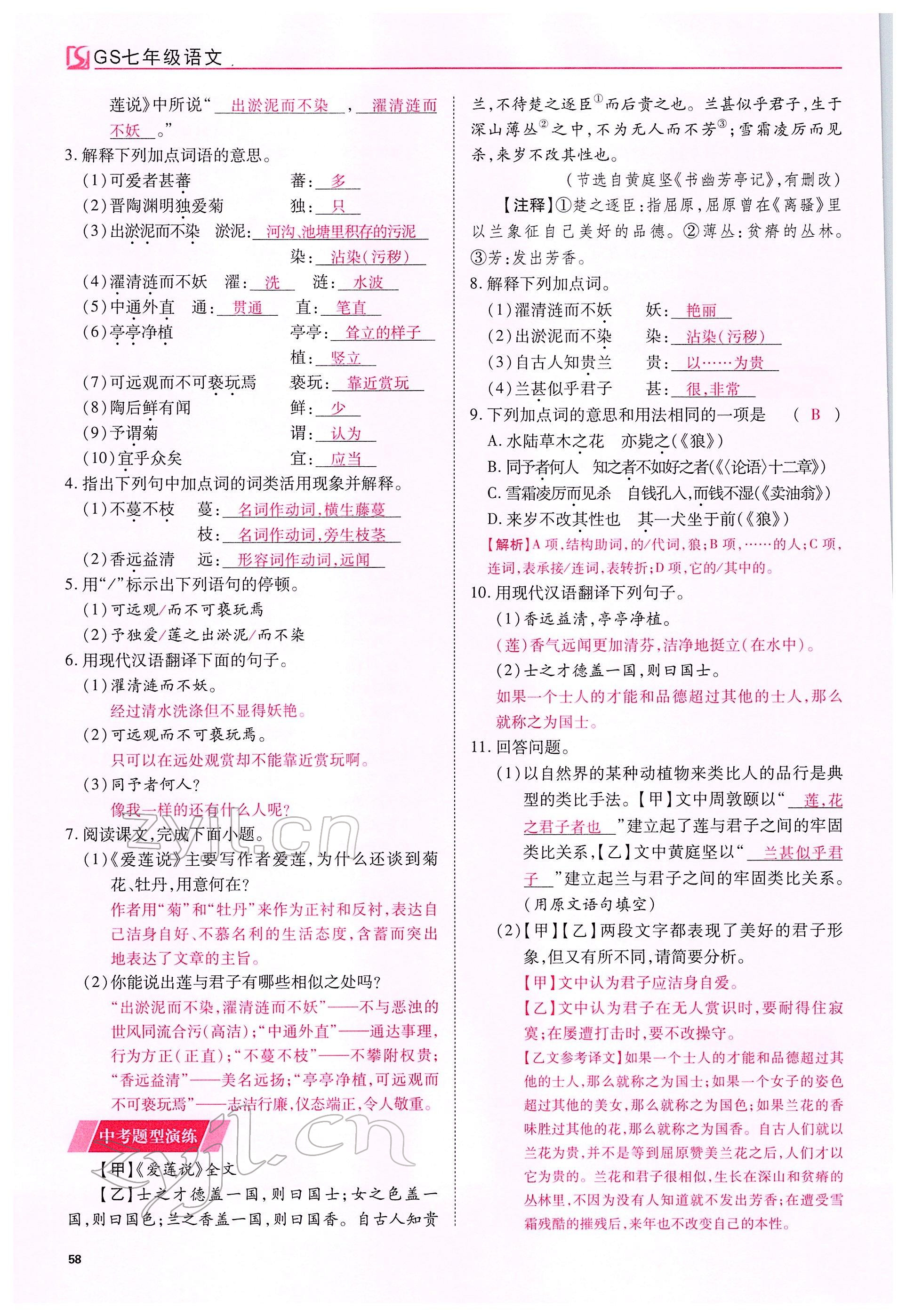注:目前有些书本章节名称可能整理的还不是很完善,但都是按照顺序排列的,请同学们按照顺序仔细查找。练习册 2022年我的作业七年级语文下册人教版甘肃专版 答案主要是用来给同学们做完题方便对答案用的,请勿直接抄袭。