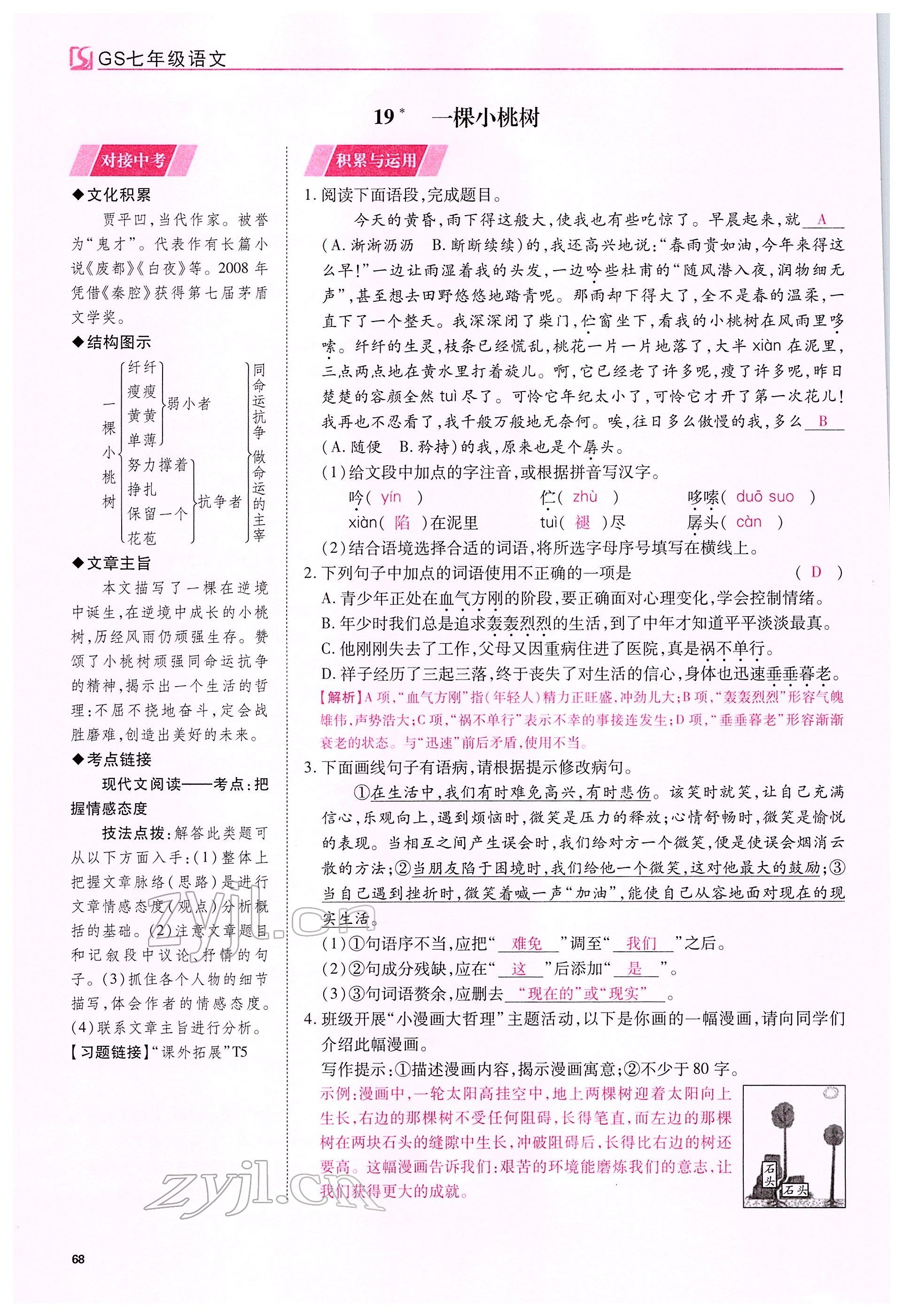 注:目前有些书本章节名称可能整理的还不是很完善,但都是按照顺序排列的,请同学们按照顺序仔细查找。练习册 2022年我的作业七年级语文下册人教版甘肃专版 答案主要是用来给同学们做完题方便对答案用的,请勿直接抄袭。
