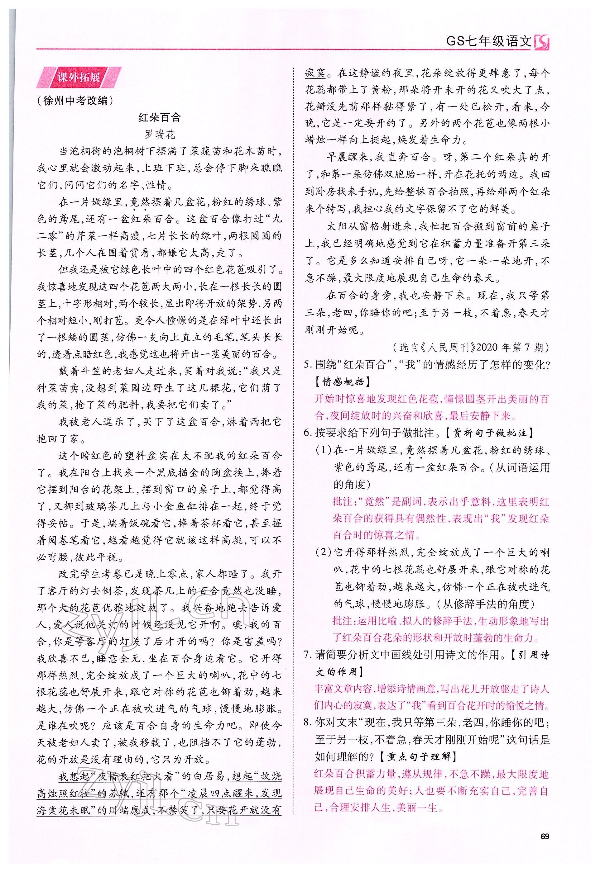 注:目前有些书本章节名称可能整理的还不是很完善,但都是按照顺序排列的,请同学们按照顺序仔细查找。练习册 2022年我的作业七年级语文下册人教版甘肃专版 答案主要是用来给同学们做完题方便对答案用的,请勿直接抄袭。