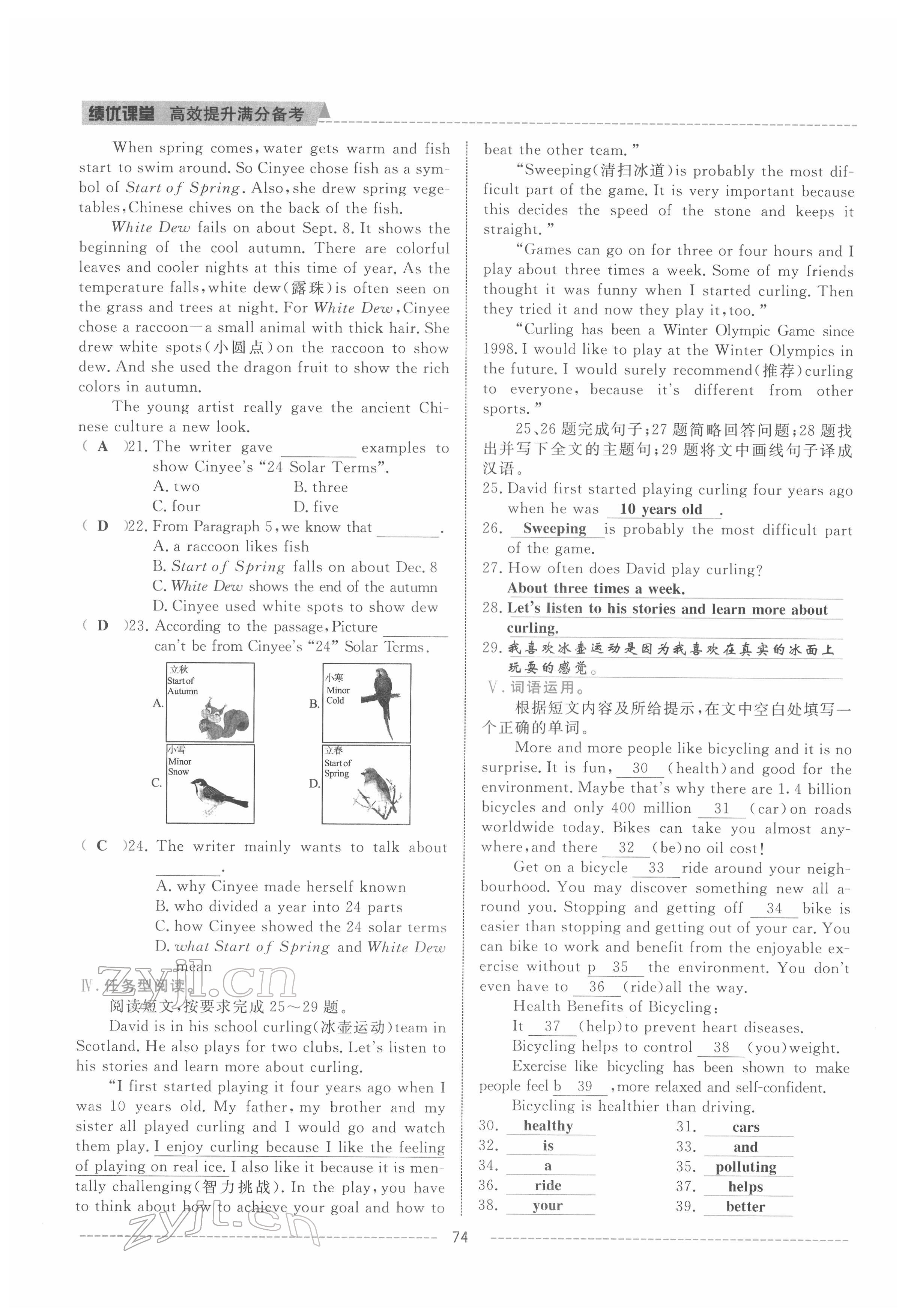- 参考答案第74页