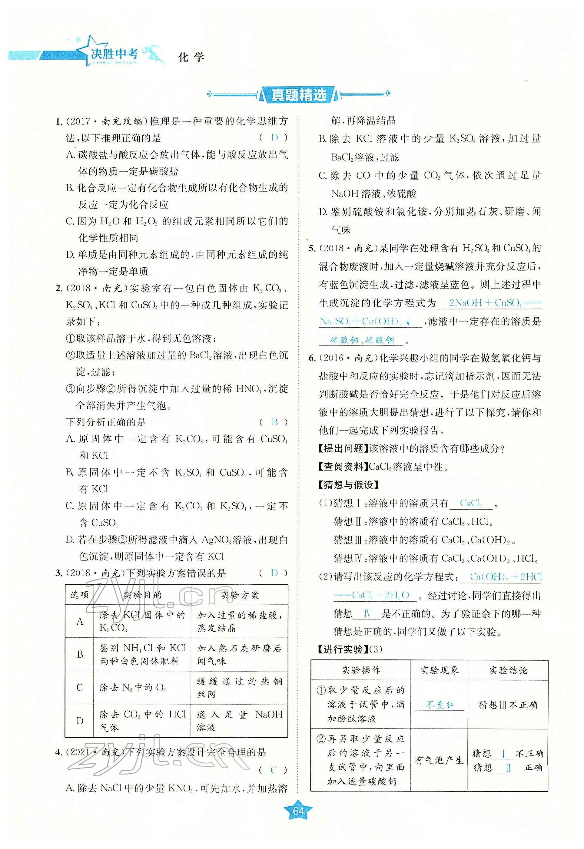 注:目前有些书本章节名称可能整理的还不是很完善,但都是按照顺序排列的,请同学们按照顺序仔细查找。练习册 2022年决胜中考化学南充专版 答案主要是用来给同学们做完题方便对答案用的,请勿直接抄袭。